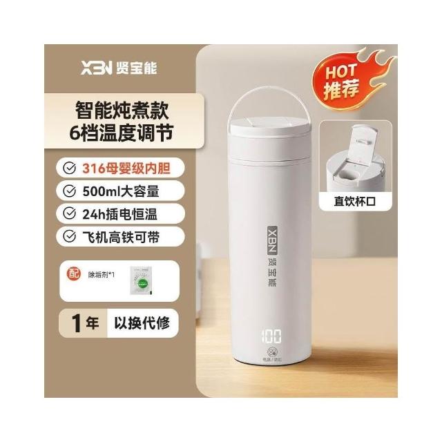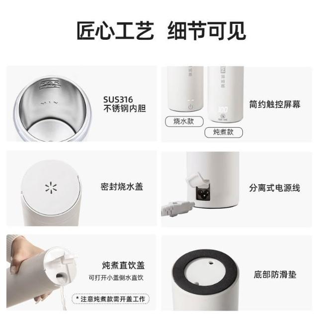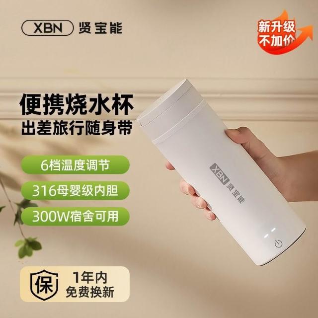 品質優選+賢寶能便攜式燒水杯燒水壺旅行出差小型學生宿舍插電電熱加熱水杯