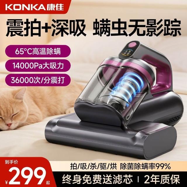 品質優選+【康佳】手持除蟎儀雙杯大吸力家用牀上除菌拍打蟎蟲紫外線熱風吸塵器