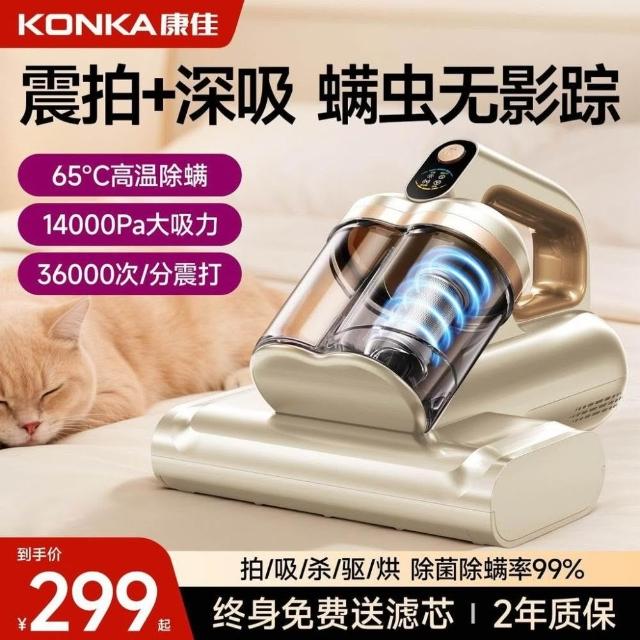 品質優選+【康佳】手持除蟎儀雙杯大吸力家用牀上除菌拍打蟎蟲紫外線熱風吸塵器