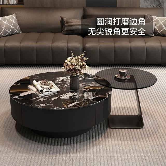 上口 2025新款高端黑色玻璃茶幾客廳家用極簡輕奢現代簡約黑色圓形組合