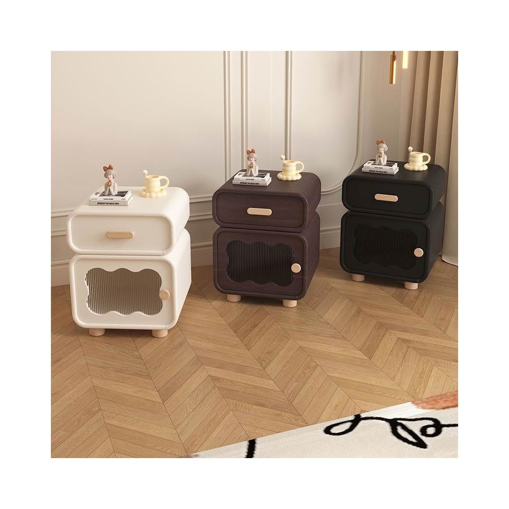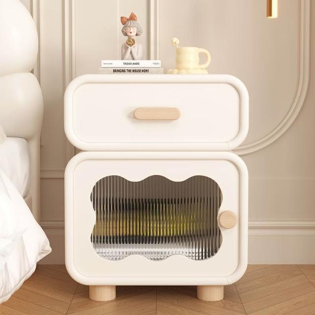 上口 床頭櫃2025新款法式奶油風創意實木臥室櫃女童小型兒童儲物收納櫃