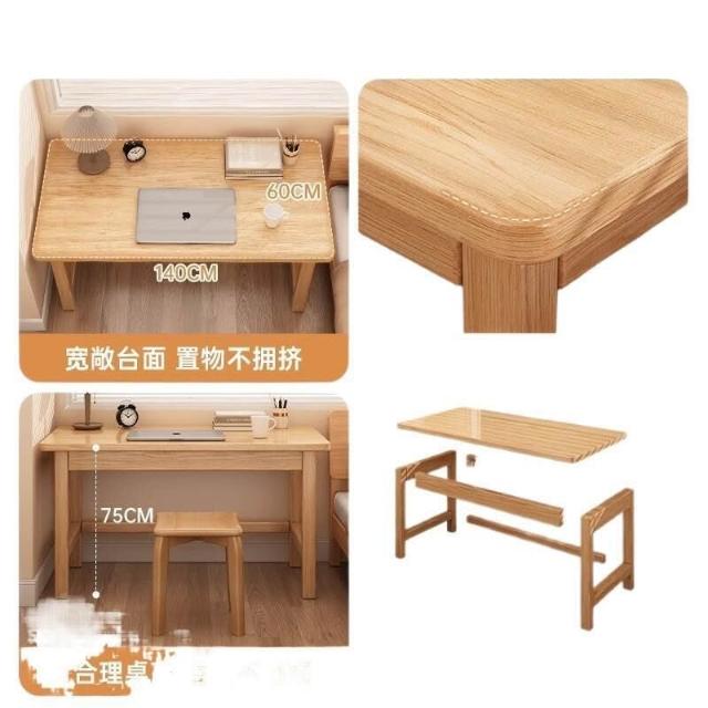 上口 實木書桌家用電腦桌辦公桌臥室學生學習寫字桌子簡易帶抽屜工作臺