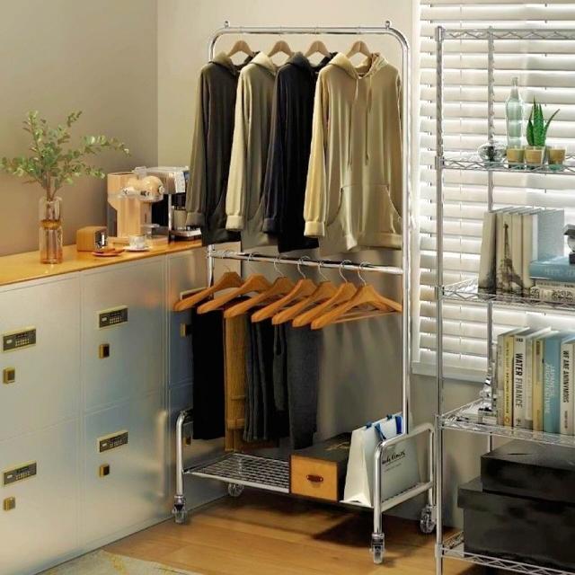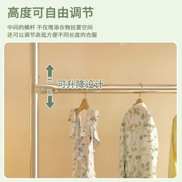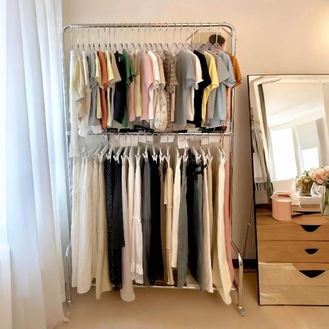 YOU樂美家居 上下雙層升降衣帽架 防銹碳鋼服裝店衣服展示架落地式臥室掛衣架