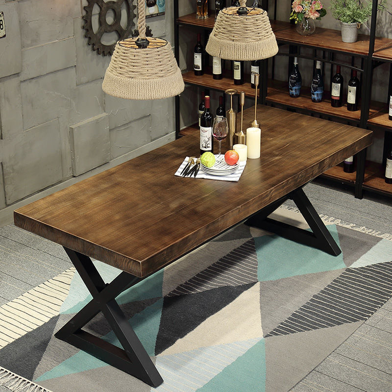 YOU樂美家居 美式復古實木餐桌工業風餐廳長方形鐵藝咖啡廳奶茶店酒吧桌椅組合