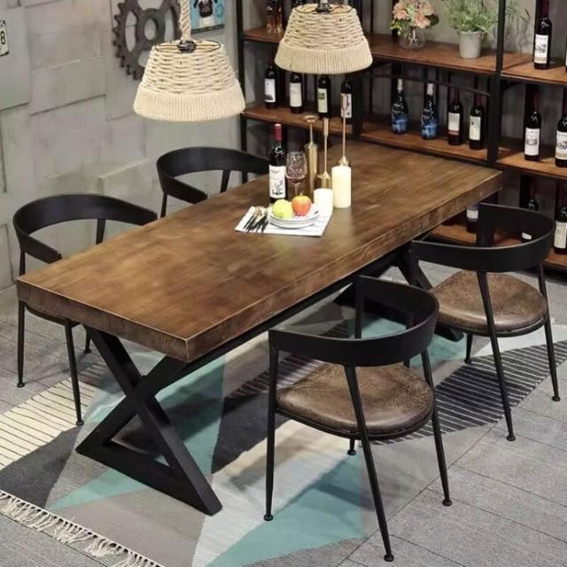 YOU樂美家居 美式復古實木餐桌工業風餐廳長方形鐵藝咖啡廳奶茶店酒吧桌椅組合