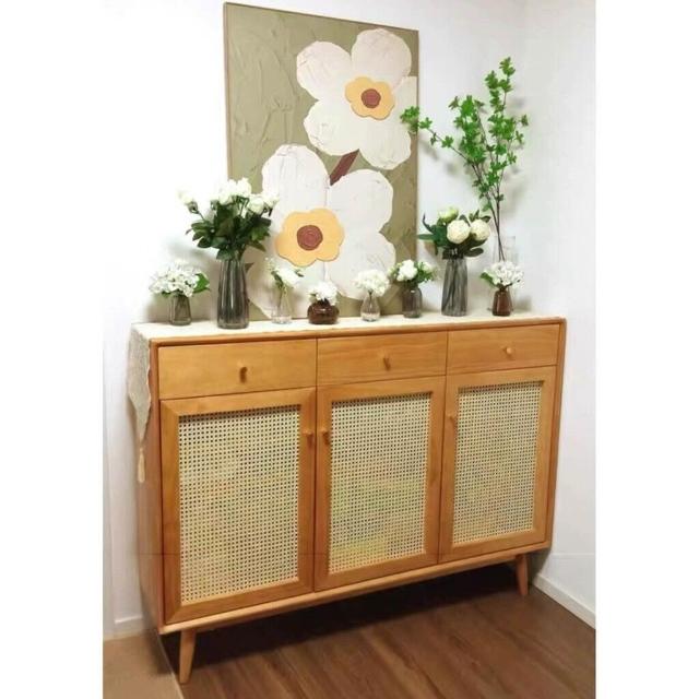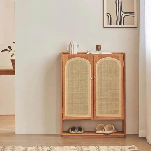 YOu樂美家居 日式鞋櫃藤編玄關櫃小戶型北歐實木儲物櫃簡約現代家用入戶收納櫃