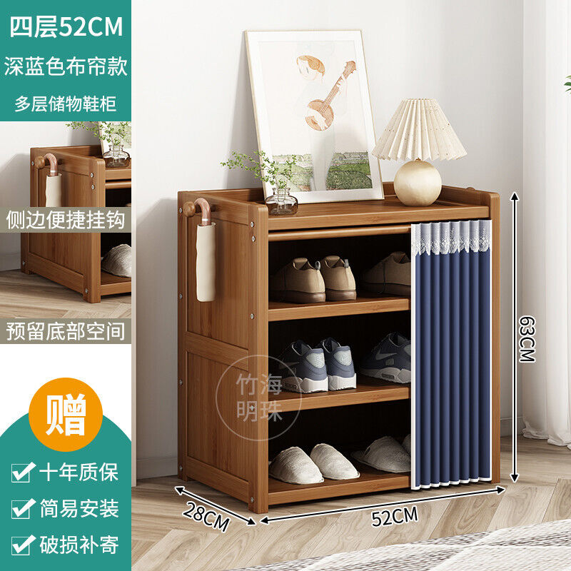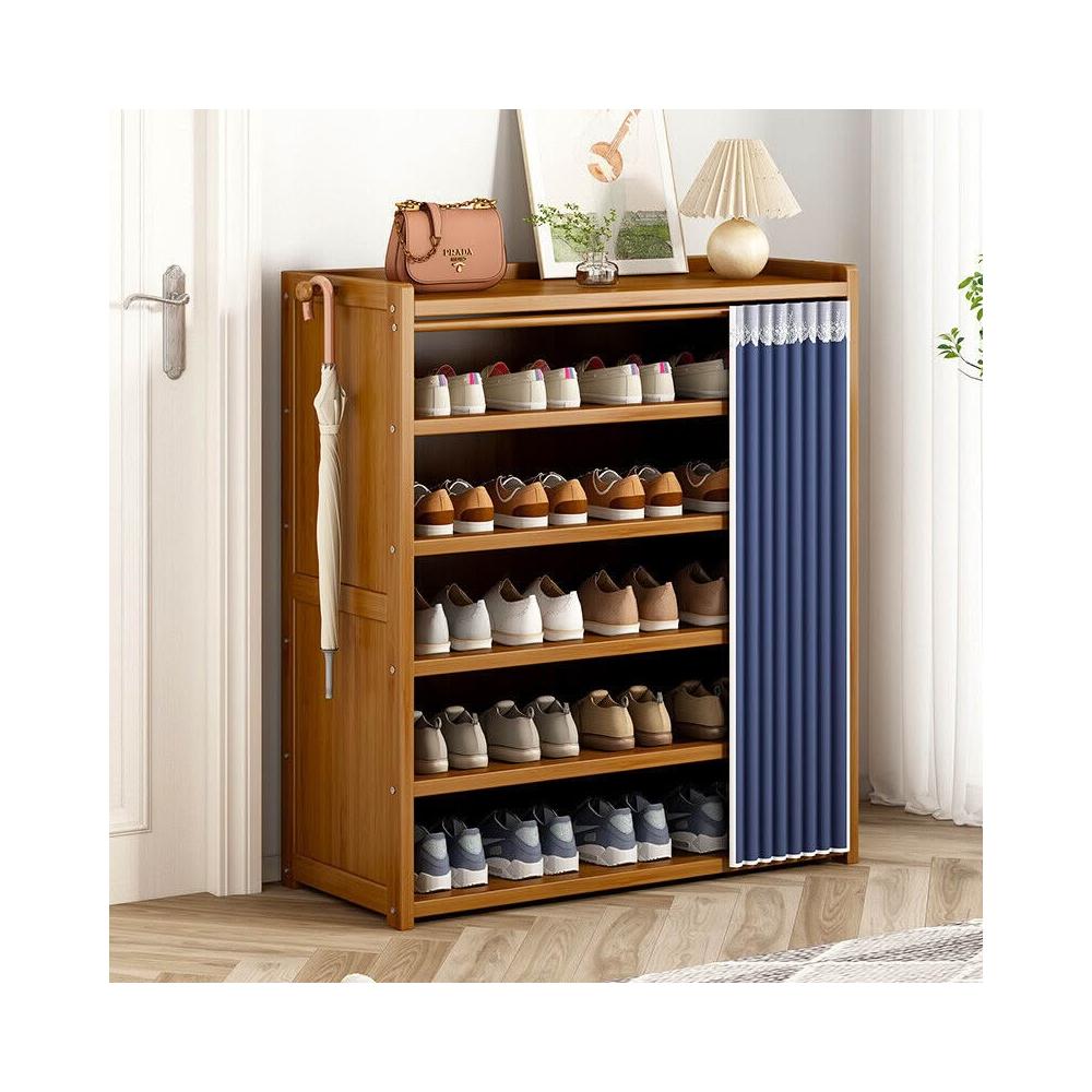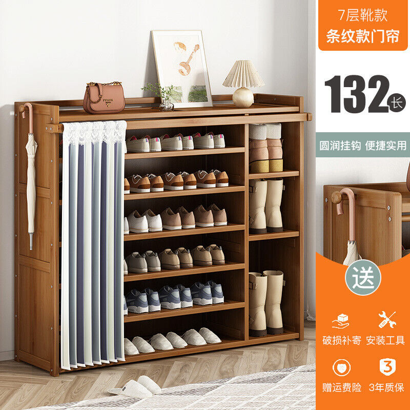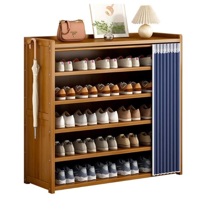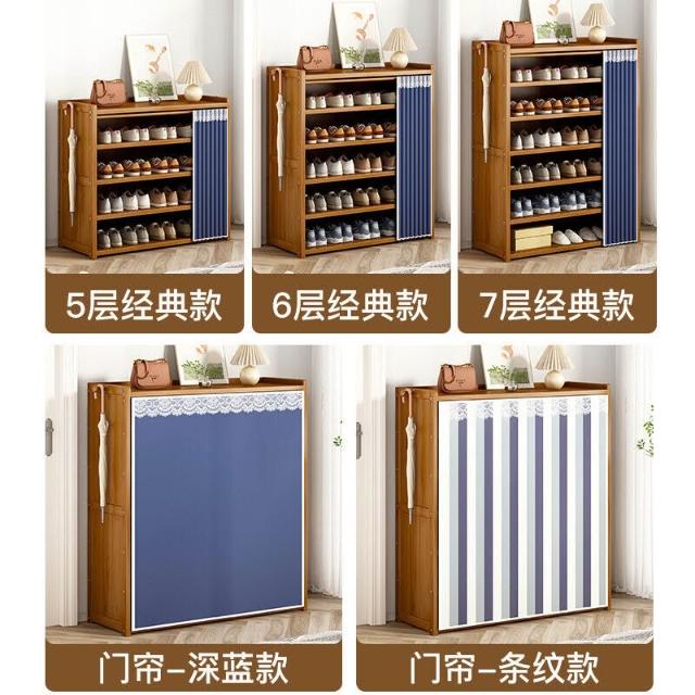 YOu樂美家居 鞋架家用經濟型室內加厚簡約門口收納家用楠竹多層防塵布藝鞋櫃