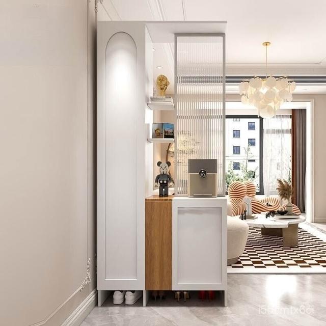 YOU樂美家居 代客安裝 免運 可開發票 超薄玄關櫃鞋櫃一體正對門口玻璃隔斷多層定製屏風玄關門廳隔斷櫃 裝飾櫃 間廳櫃 置物櫃 屏風櫃