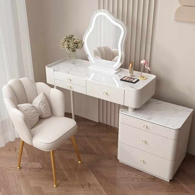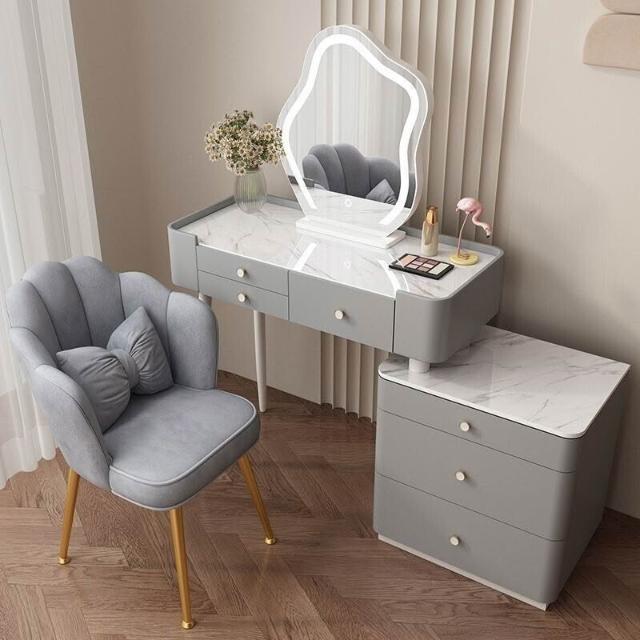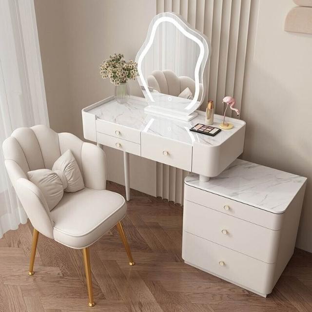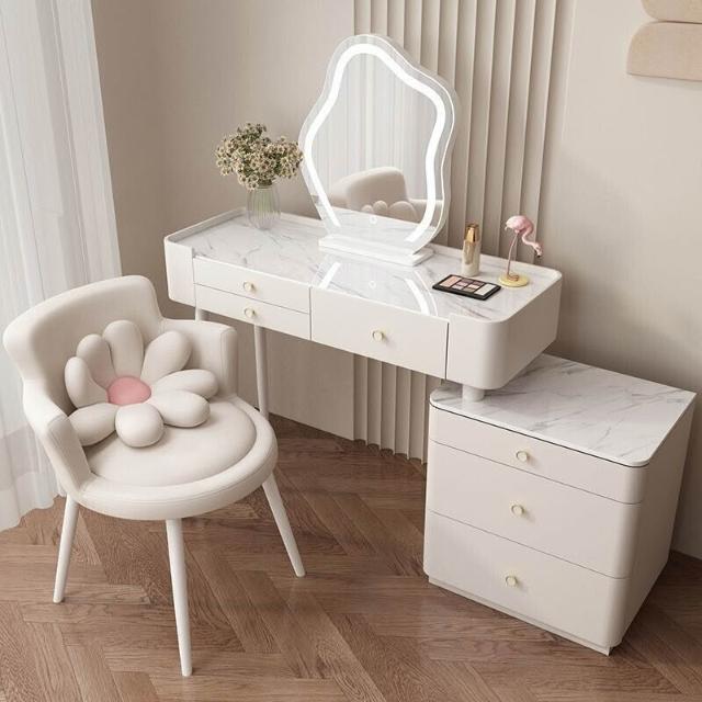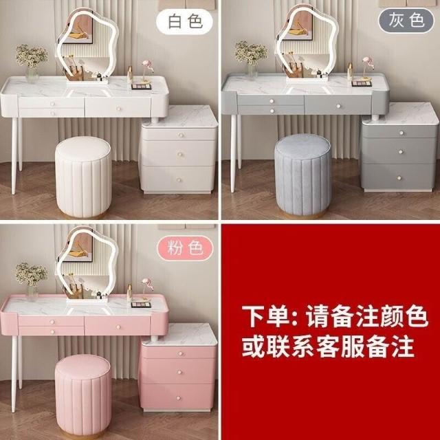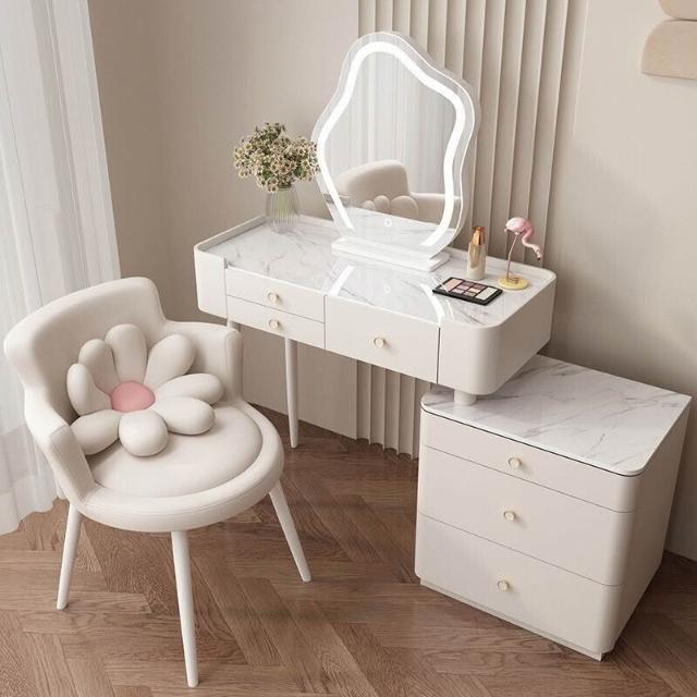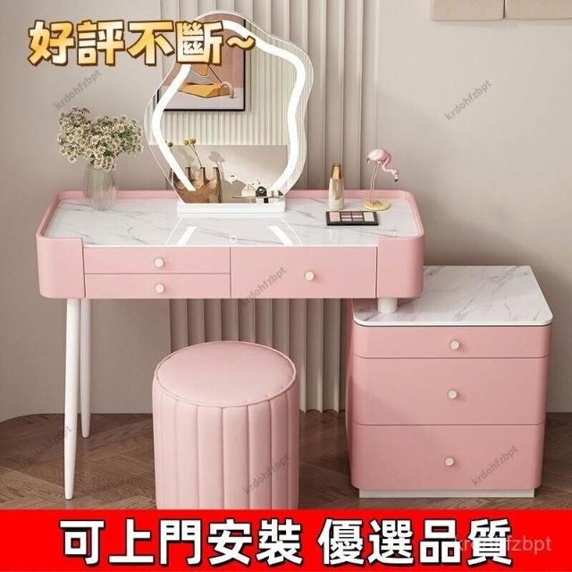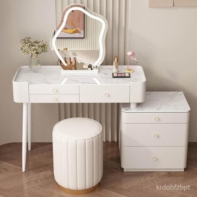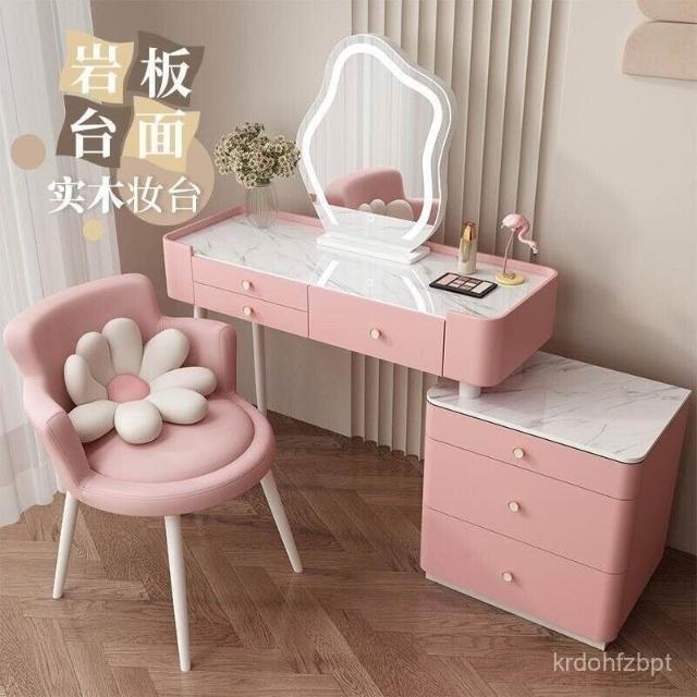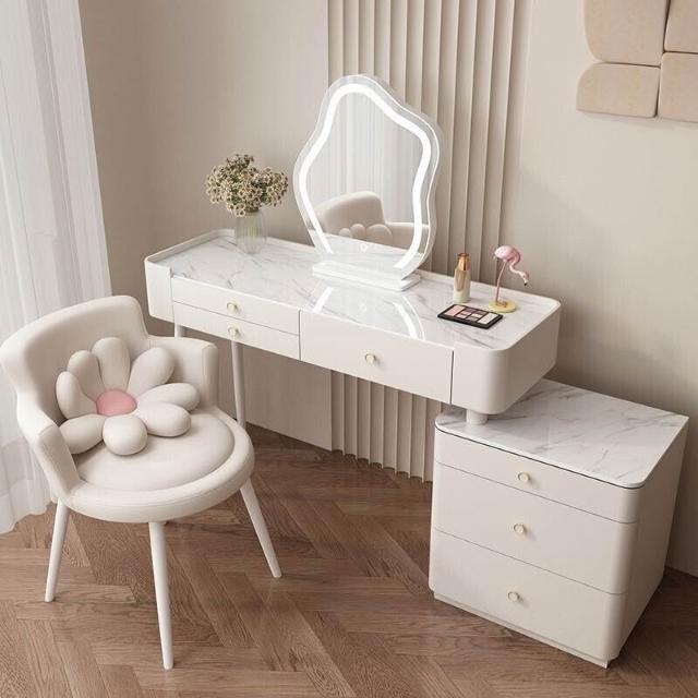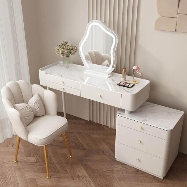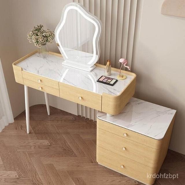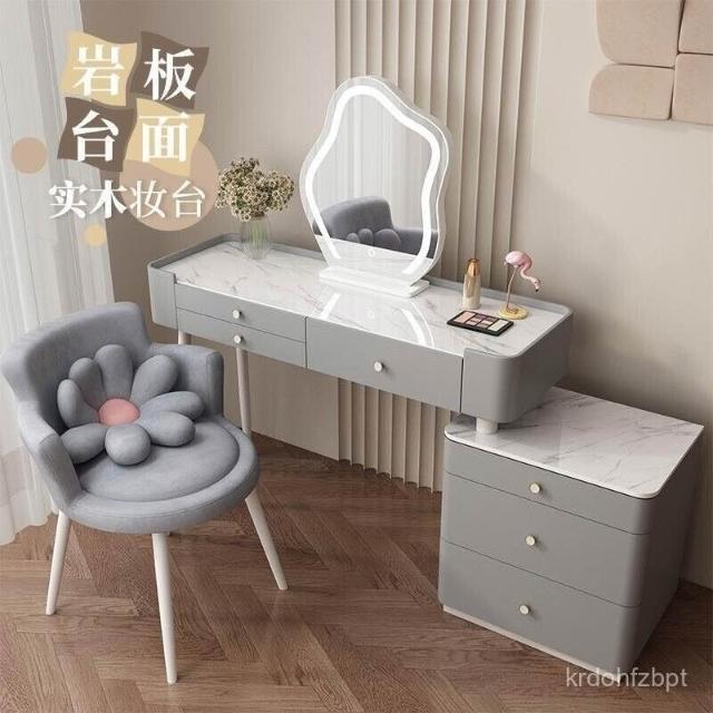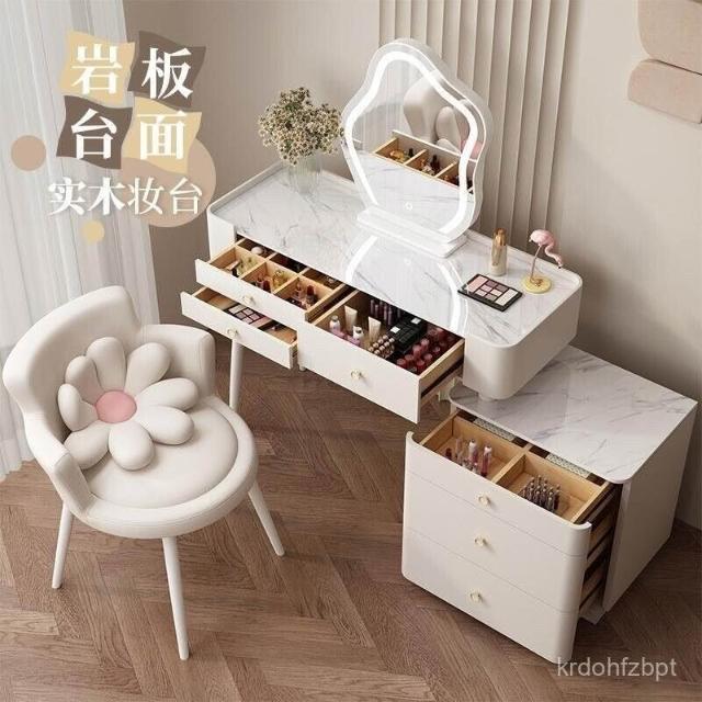 YOU樂美家居 全臺可上門安裝 宅配到府奶油風臥室梳妝臺鬥櫃一體現代簡約巖闆輕奢化妝臺實木北歐化妝桌 S3ZK