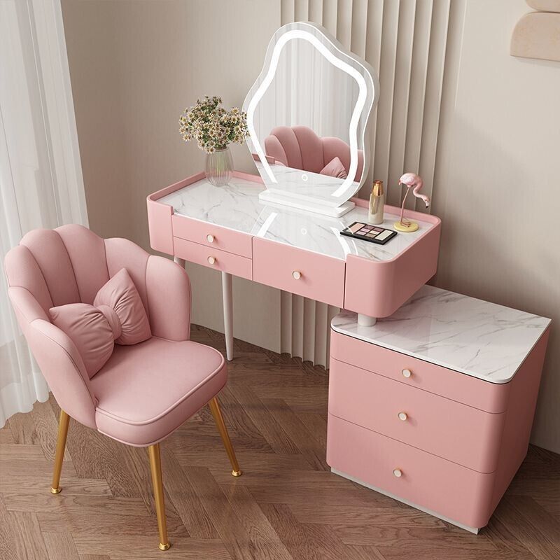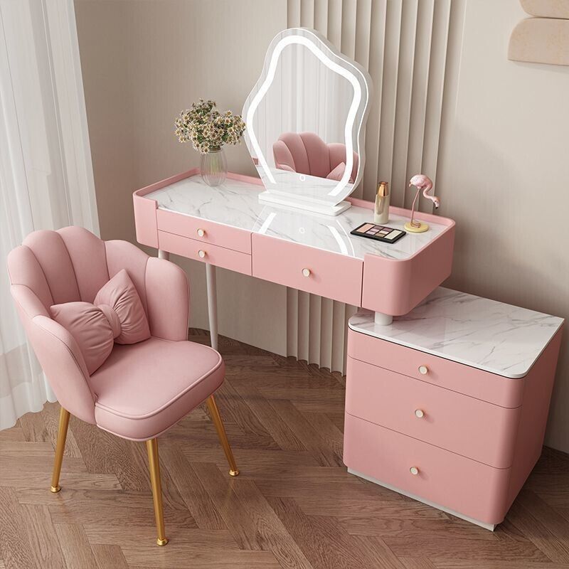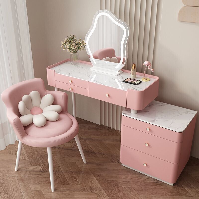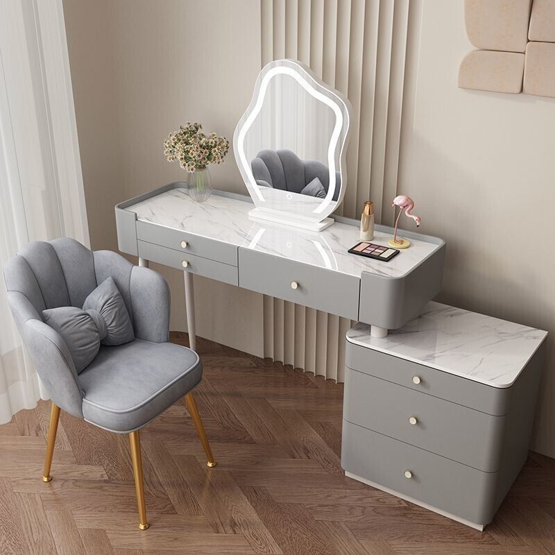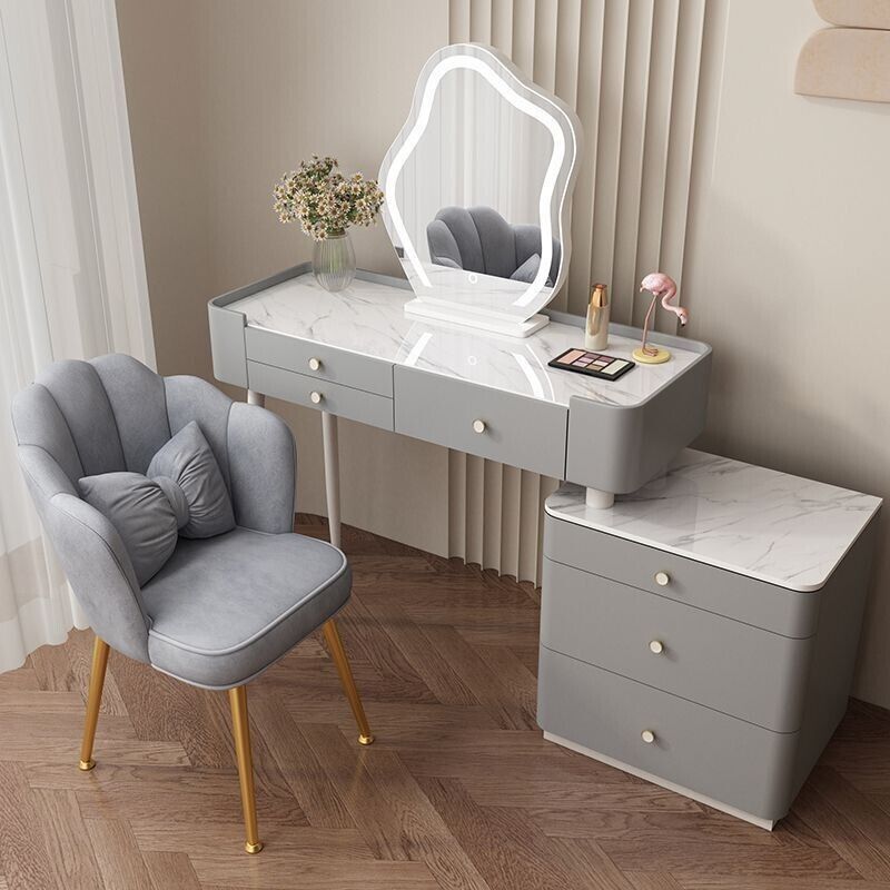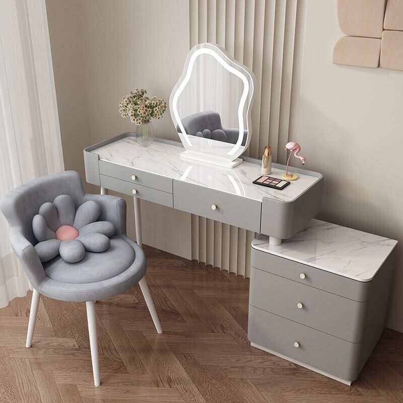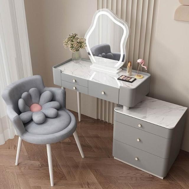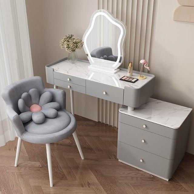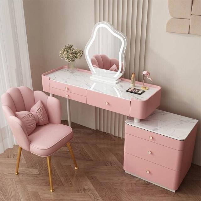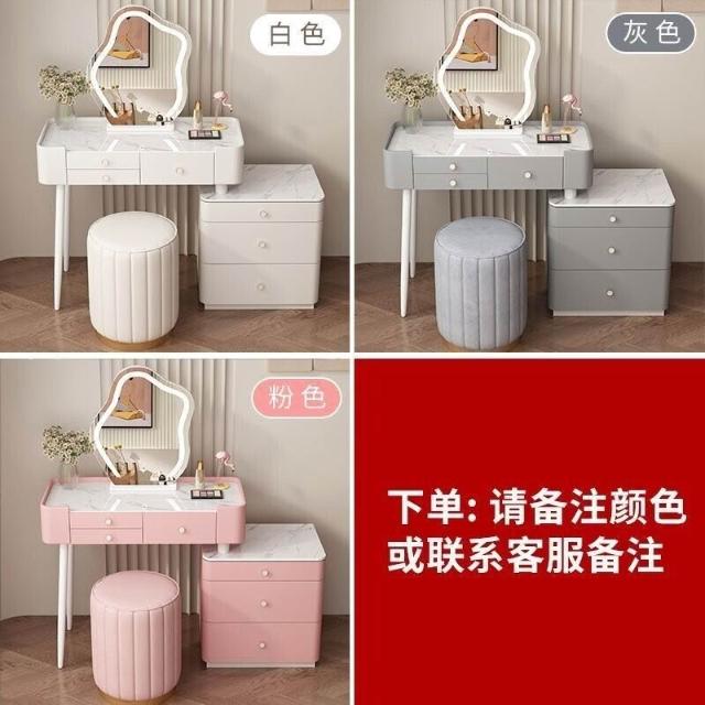 YOU樂美家居 全臺可上門安裝 宅配到府奶油風臥室梳妝臺鬥櫃一體現代簡約巖闆輕奢化妝臺實木北歐化妝桌 S3ZK