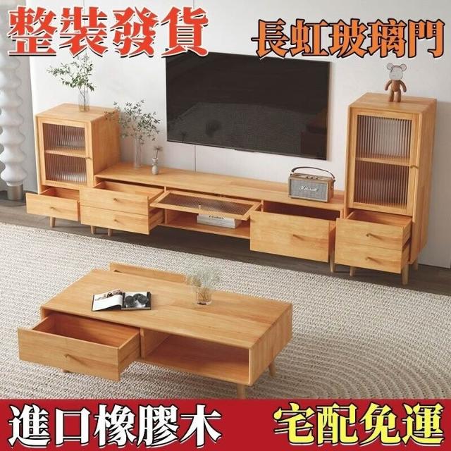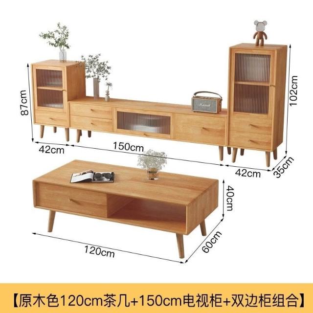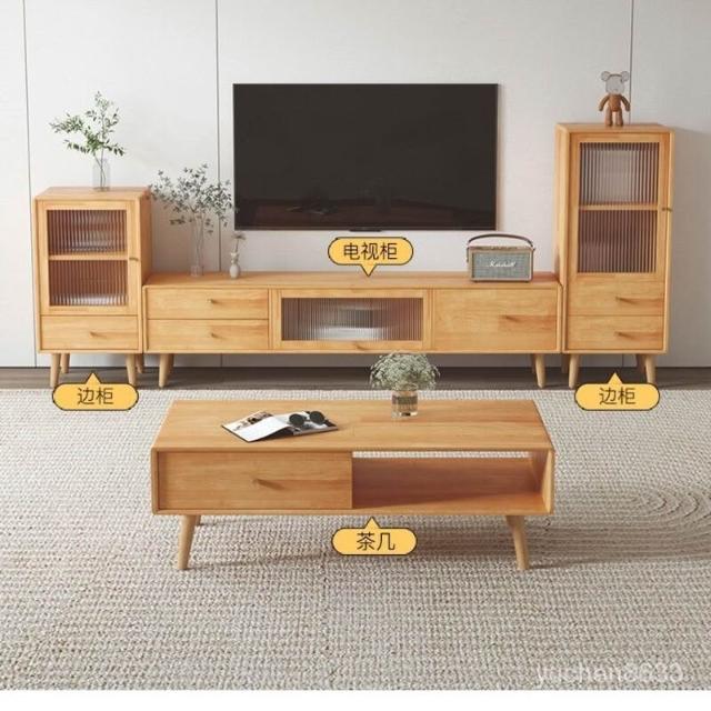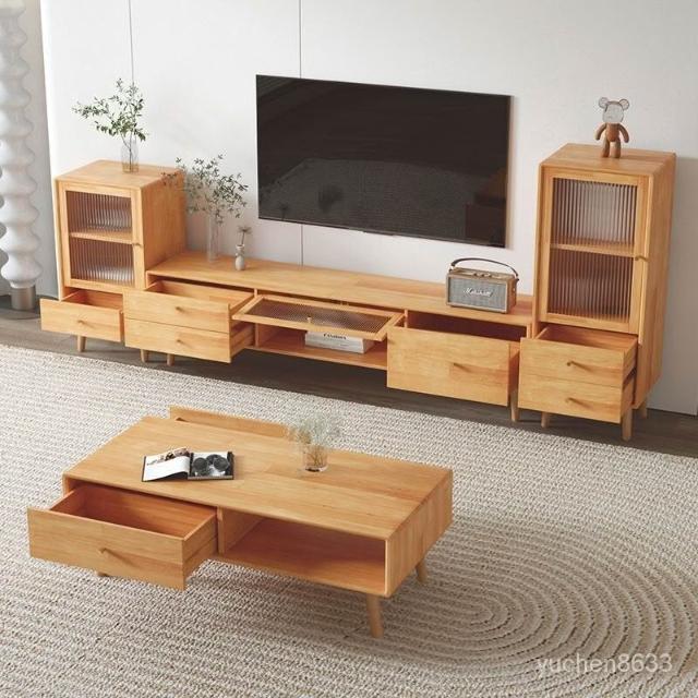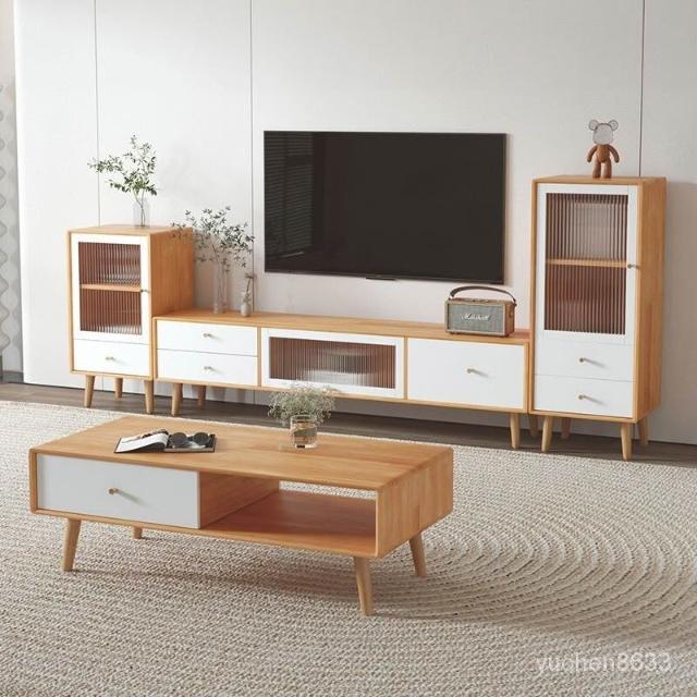YOU樂美家居 健康實木板材 免運 開發票全實木電視櫃茶幾組閤 北歐現代簡約小戶型矮櫃客廳原木風電視機櫃 電視櫃 茶幾 抽屜櫃