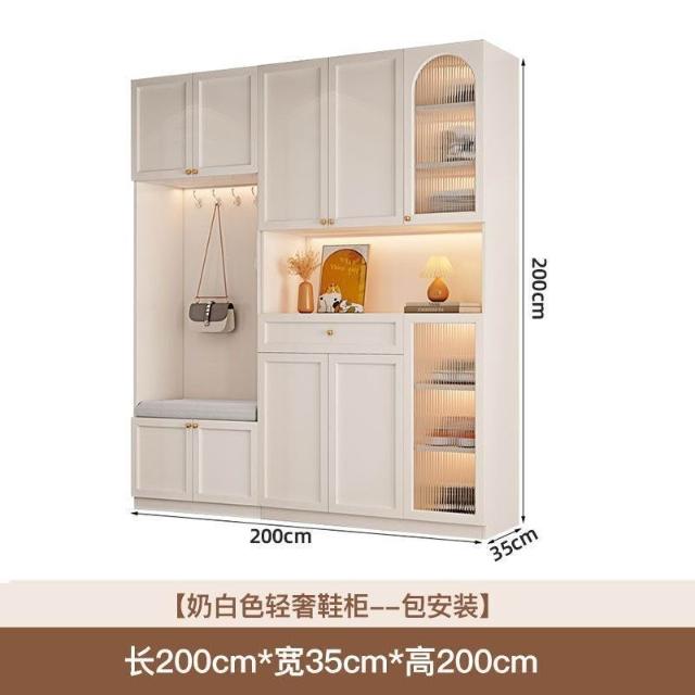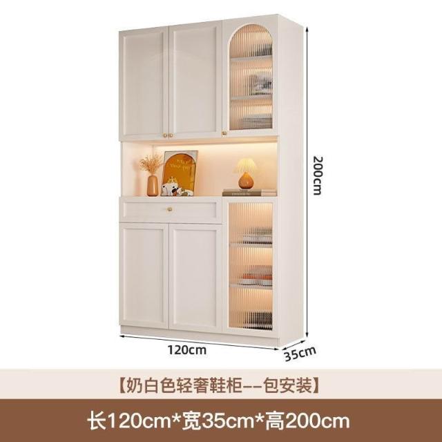 YOU樂美家居 優選品質 宅配到家輕奢奶油風美式餐邊櫃實木玄關櫃一體入戶靠墻隔斷櫃家用門口屏風櫃門廳現代簡約拐角輕奢收納櫃儲物櫃櫃子