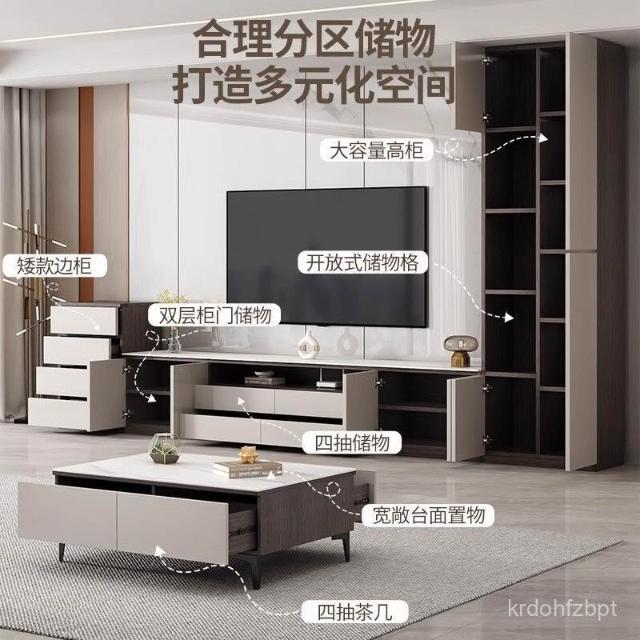YOU樂美家居 ⭐全臺可上門安裝 宅配到府⭐巖闆落地電視櫃茶幾組閤儲物櫃一體鬥櫃邊櫃小戶型家用背景強櫃子 RKVQ