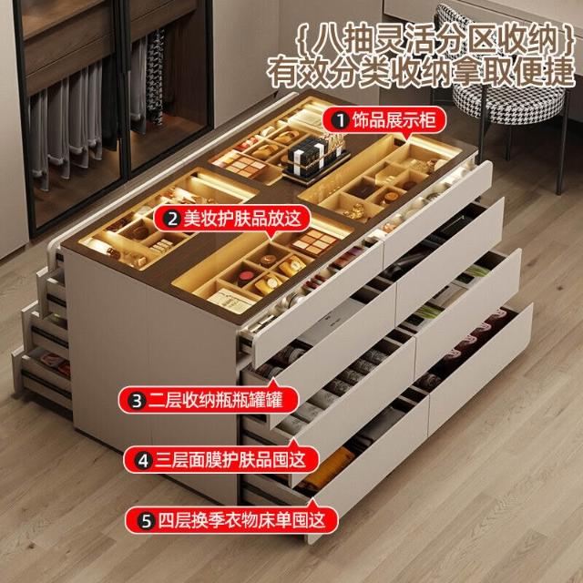 YOU樂美家居 售後無憂+可開發票免運 奶油風衣帽間中島臺 小戶型臥室雙面鬥櫃 組合抽屜 儲物櫃 首飾展示櫃