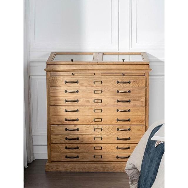 YOU樂美家居 售後無憂+可開發票免運 實木衣帽間 首飾收納櫃 北歐復古商用橡木展示櫃 美式首飾櫃落地