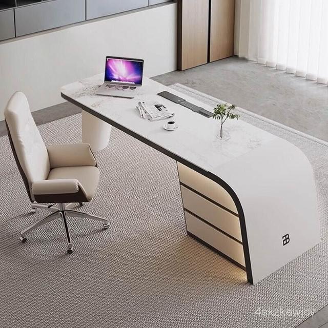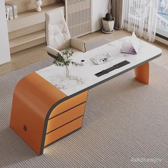 YOU樂美家居 新品熱賣意式巖闆辦公桌現代簡約書房書桌設計師輕奢電腦桌高檔大氣老闆桌 UOXD