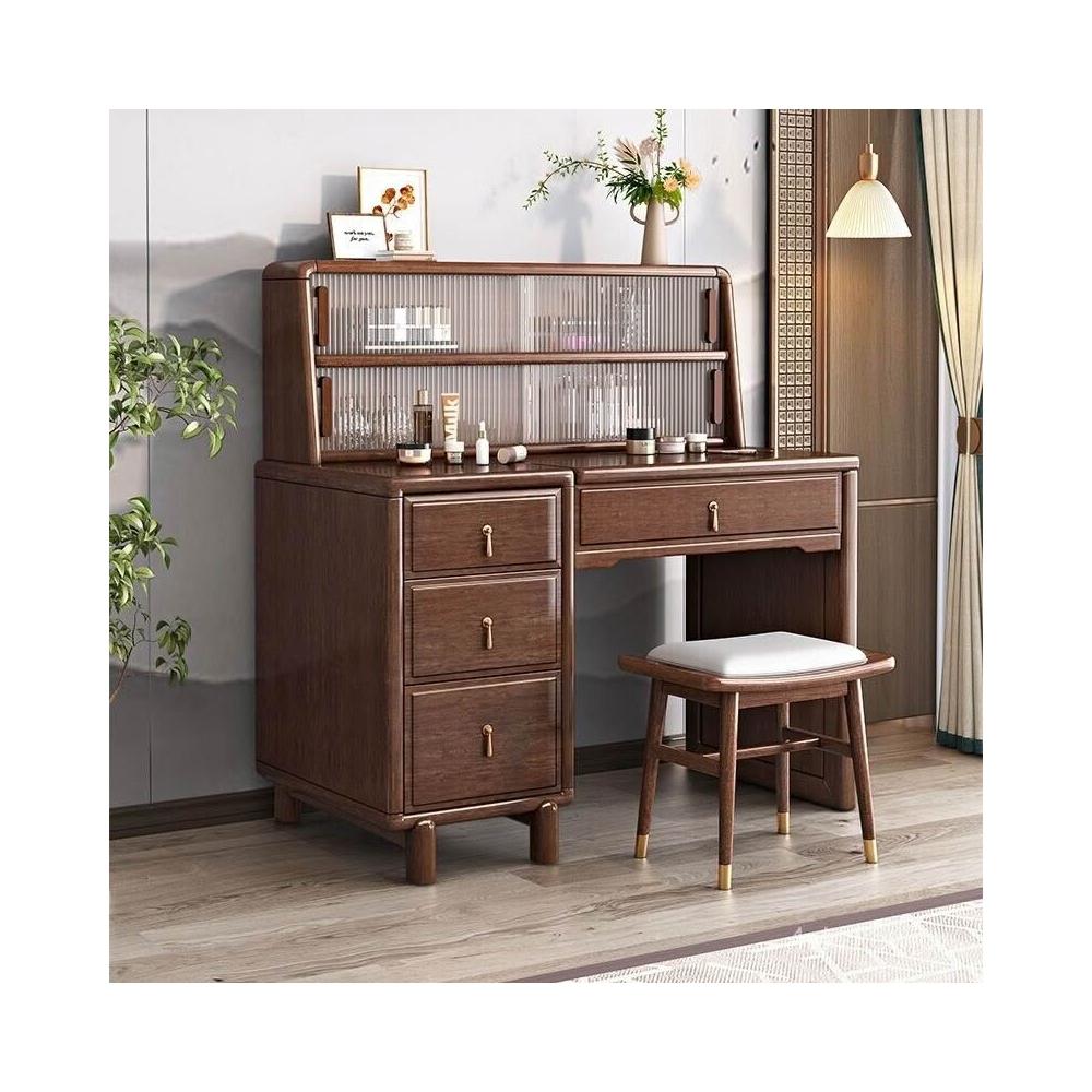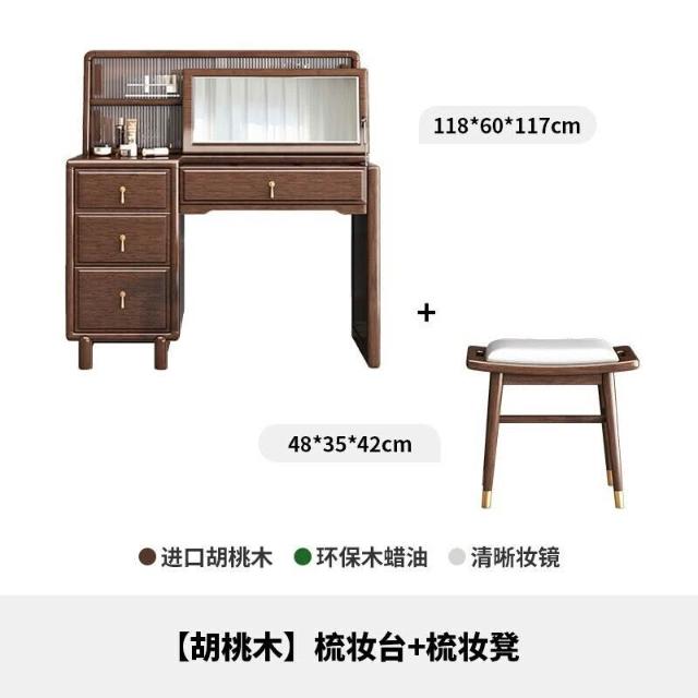 YOU樂美家居 新品熱賣迪美爾實木梳妝臺衚桃木小戶型翻蓋儲物收納化妝桌兩用一體帶鏡子 SPMW