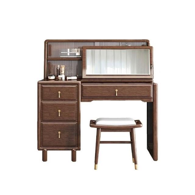 YOU樂美家居 新品熱賣迪美爾實木梳妝臺衚桃木小戶型翻蓋儲物收納化妝桌兩用一體帶鏡子 SPMW