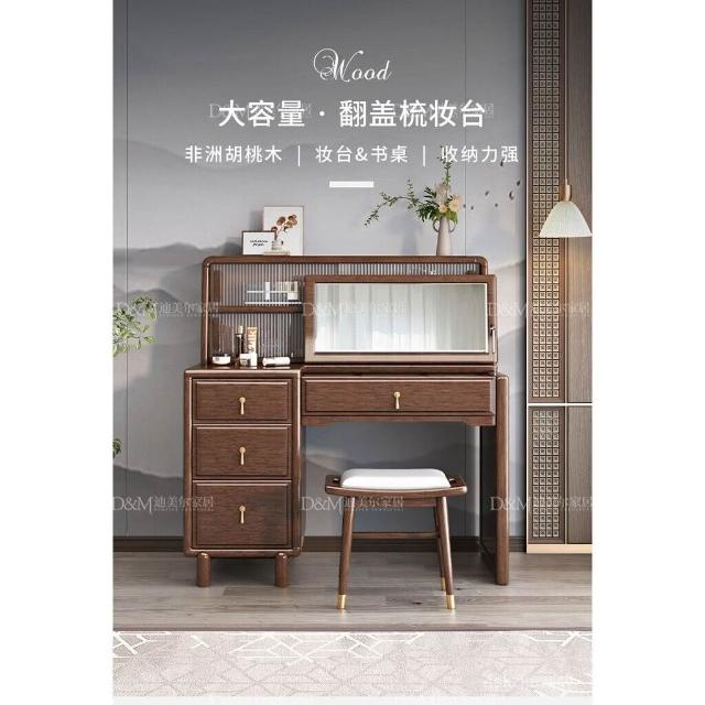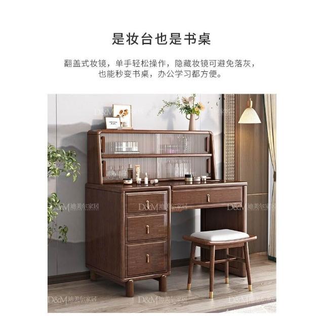 YOU樂美家居 新品熱賣迪美爾實木梳妝臺衚桃木小戶型翻蓋儲物收納化妝桌兩用一體帶鏡子 SPMW