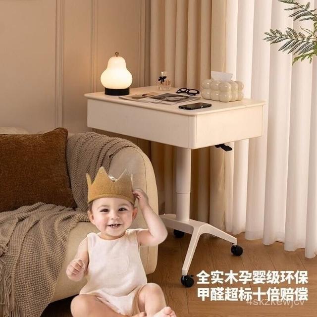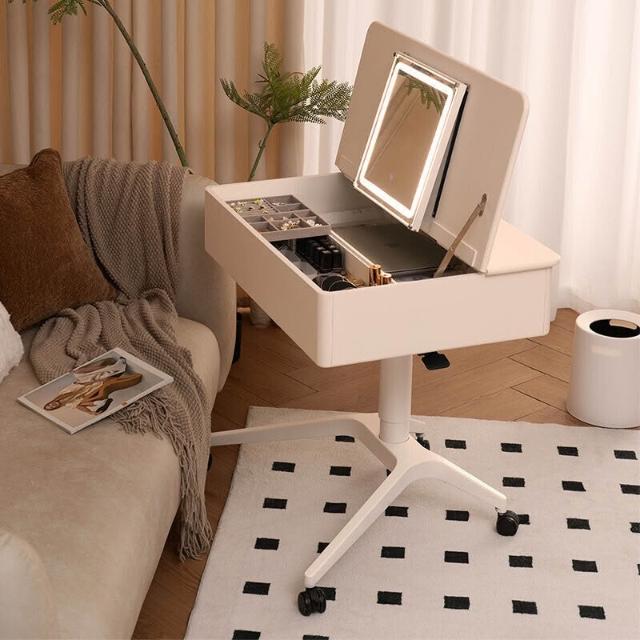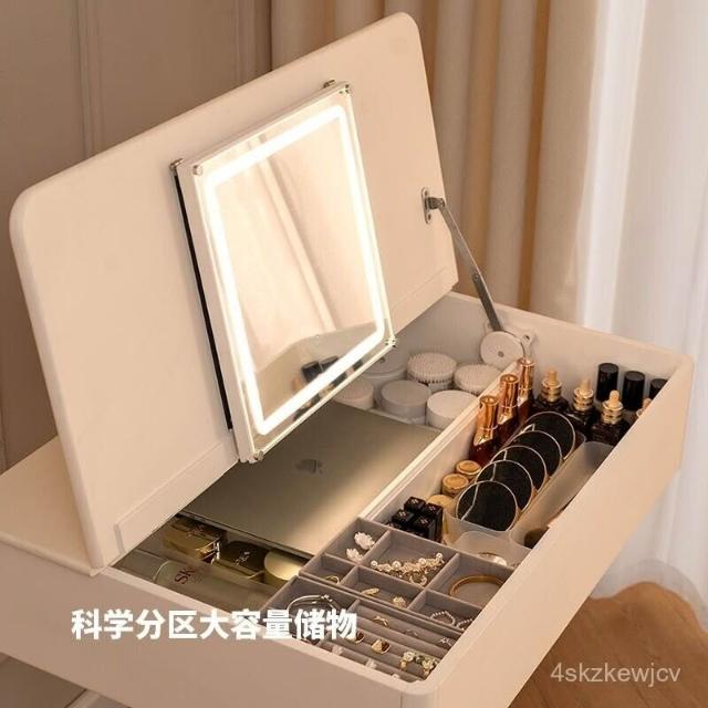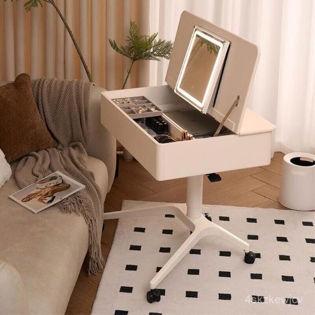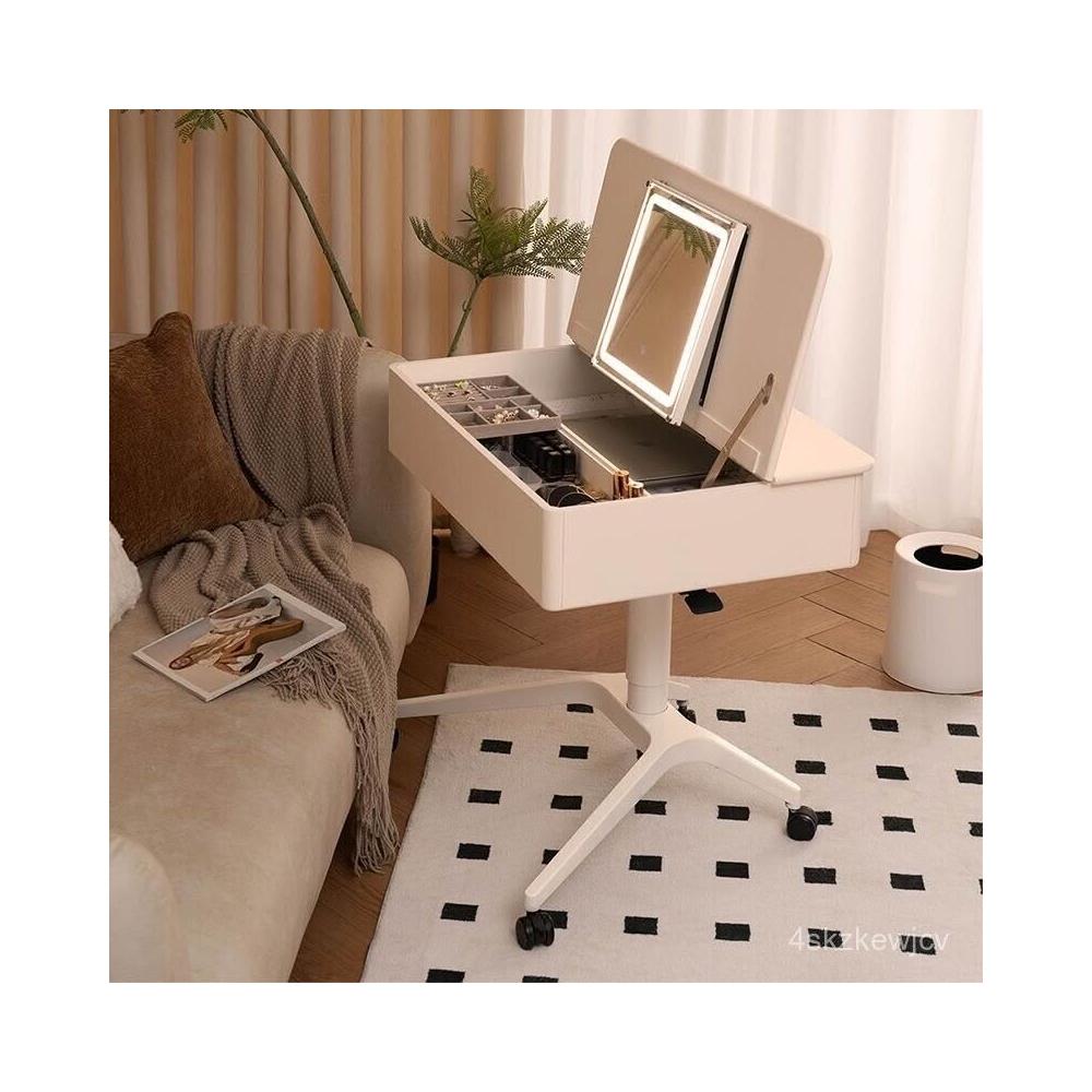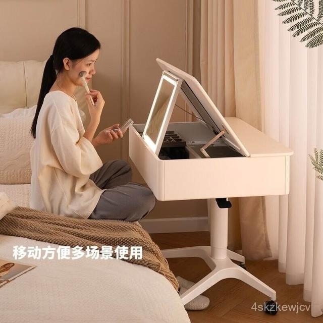 YOU樂美家居 新品熱賣可移動梳妝臺小戶型奶油風小型陞降化妝臺臥室帶輪實木翻蓋化妝桌 TLVF