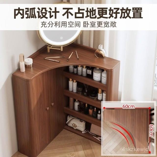 YOU樂美家居 免運可開發票360旋實木圓弧墻角梳妝臺小型轉角化妝桌臥室拐角小戶型角落三角化妝臺 QM1X