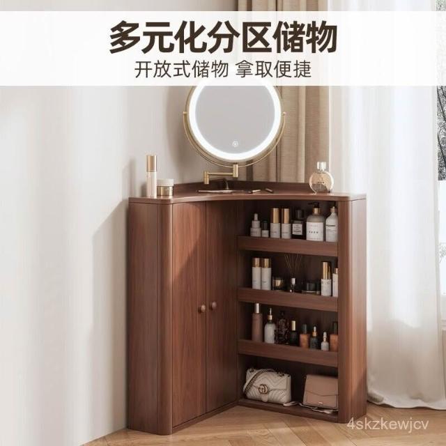 YOU樂美家居 ‍免運‍可開發票360旋實木圓弧墻角梳妝臺小型轉角化妝桌臥室拐角小戶型角落三角化妝臺 QM1X