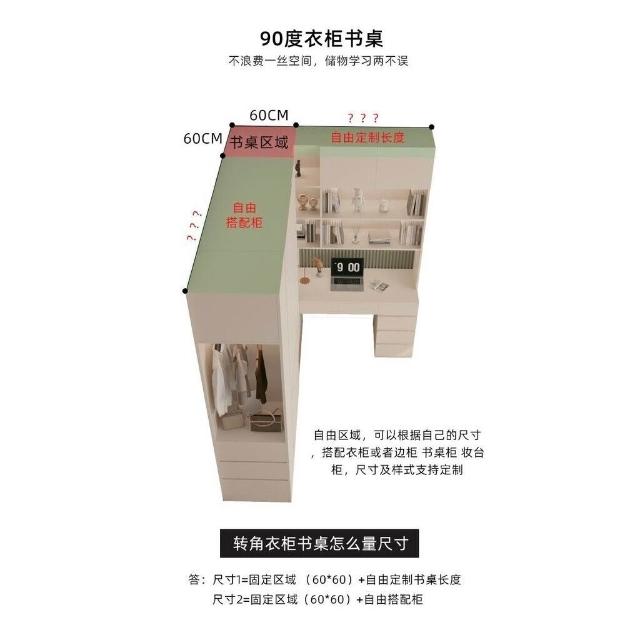 YOU樂美家居 免運#L型轉角衣櫃書桌一體 分段式家用臥室電腦桌學習桌 90度拐角衣櫥 WZFI