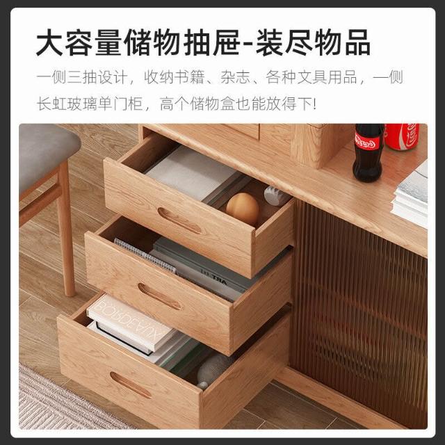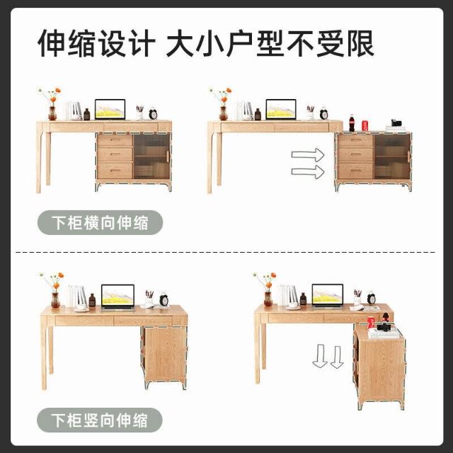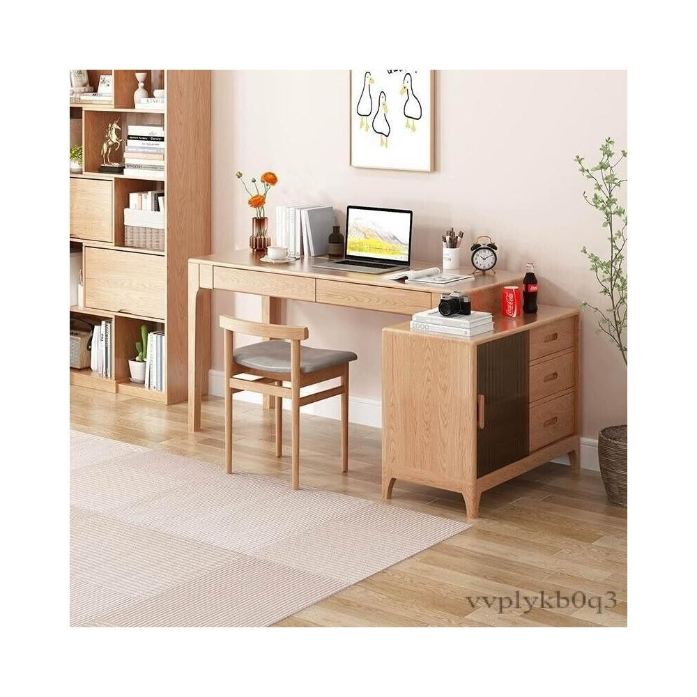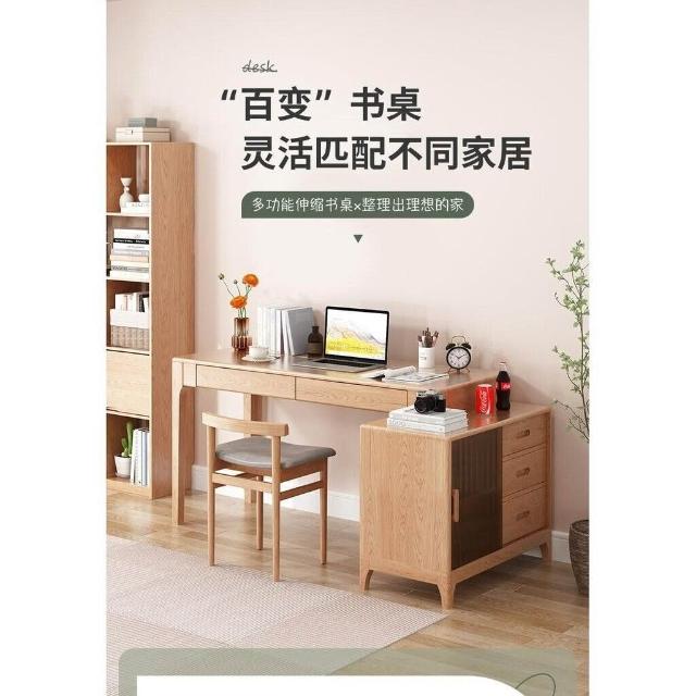 YOU樂美家居 免運 木屋系列傢具 實木書桌 書櫃一體 轉角伸縮電腦桌 家用臥室辦公學習桌子