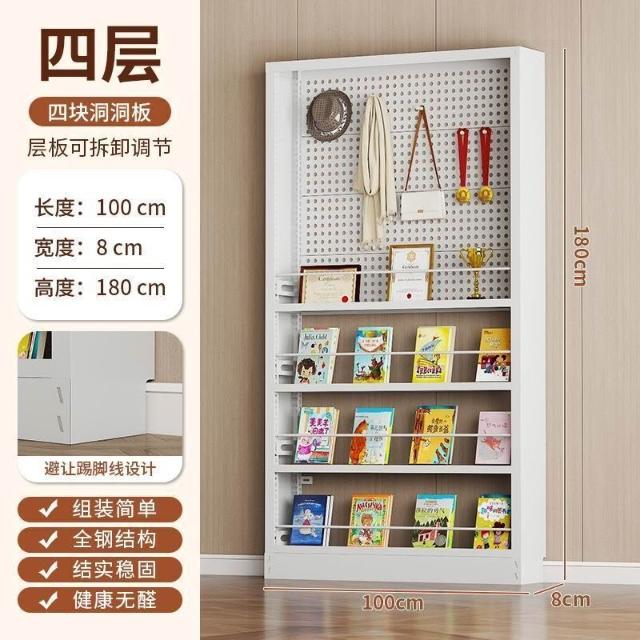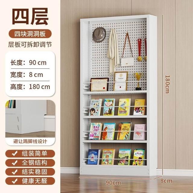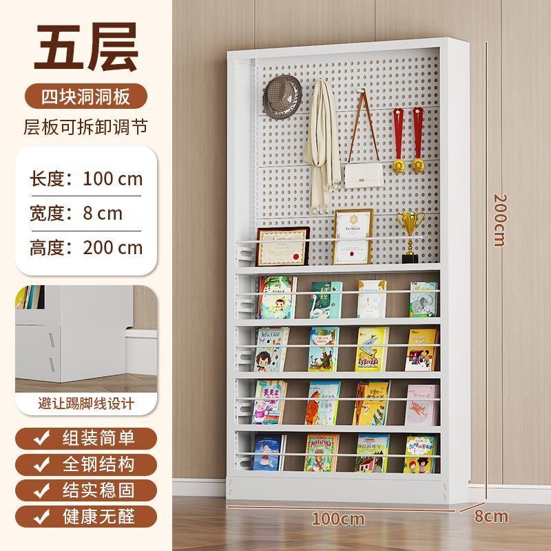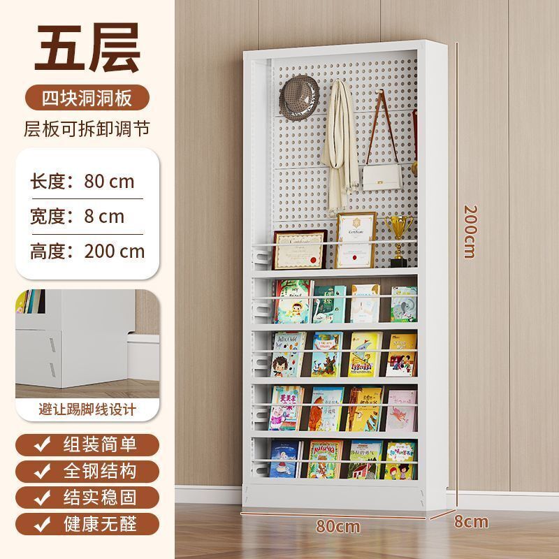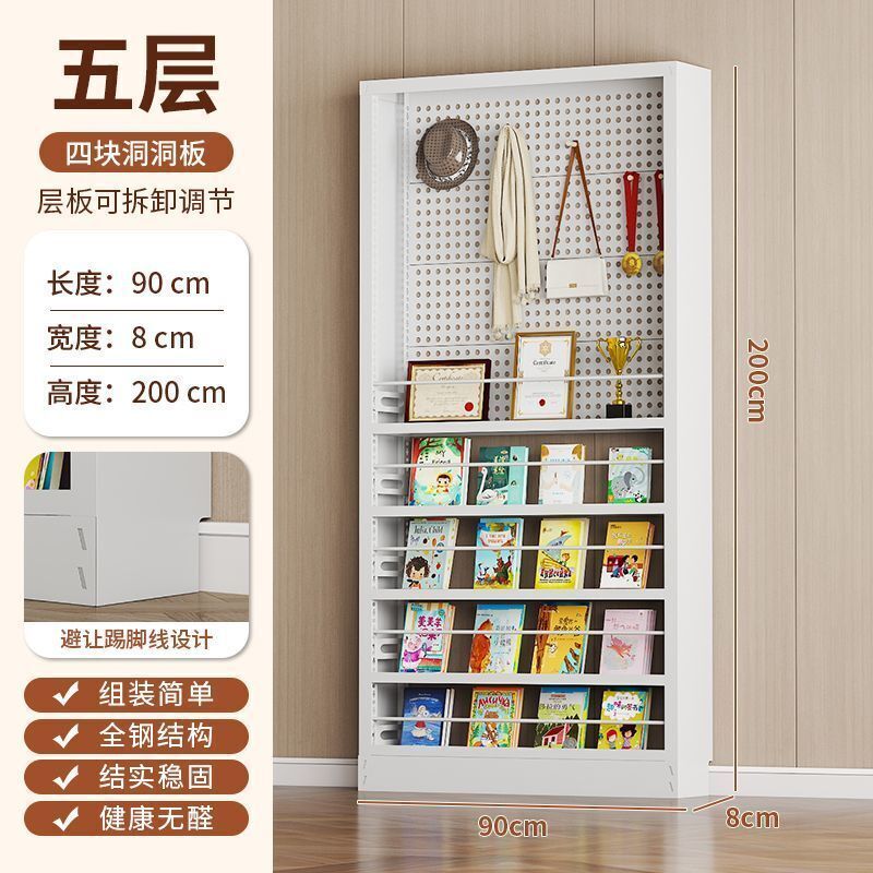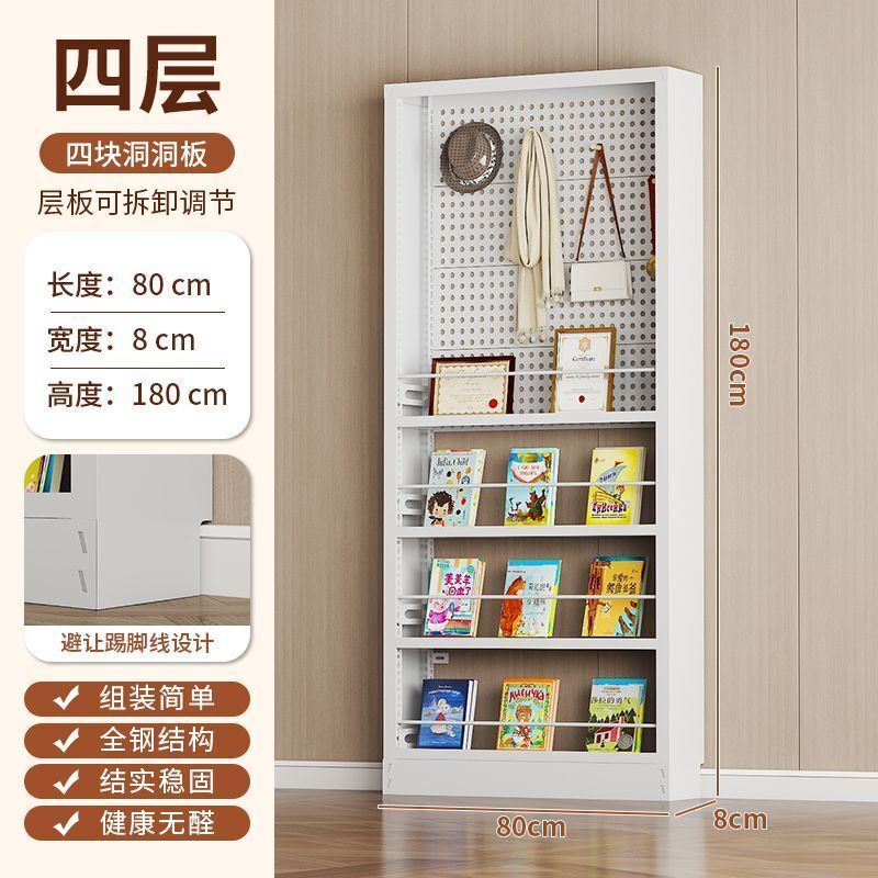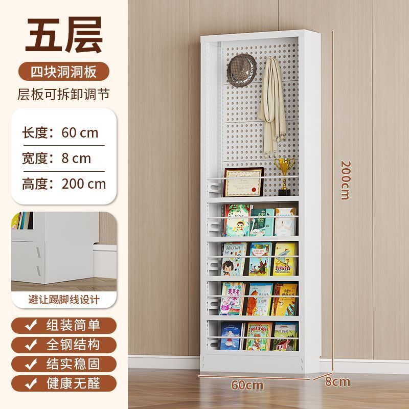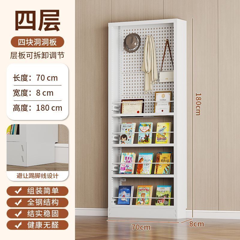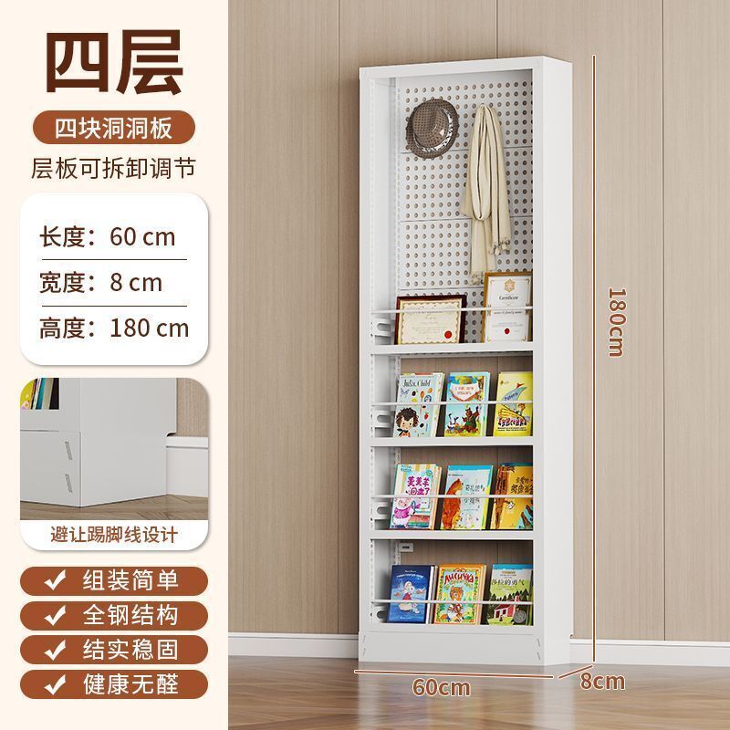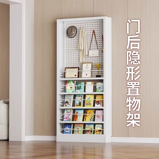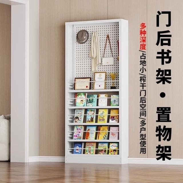 YOU樂美家居 優選好物門後書架鋼製洞洞板置物架多層收納一體靠墻落地超薄家用兒童書櫃