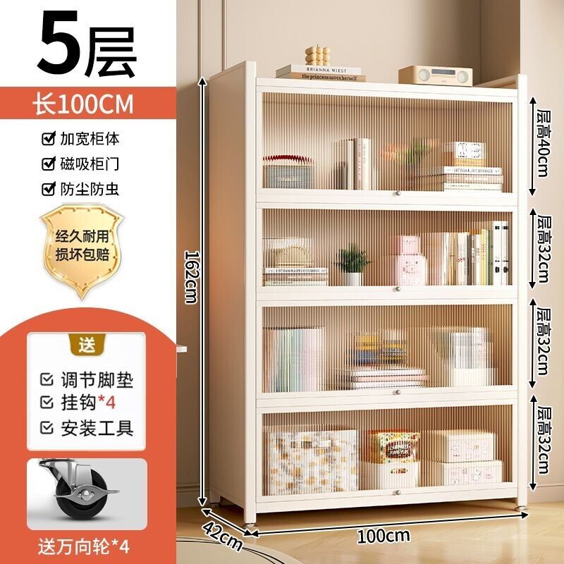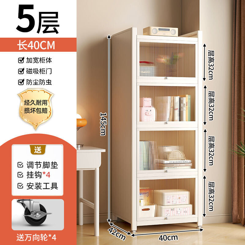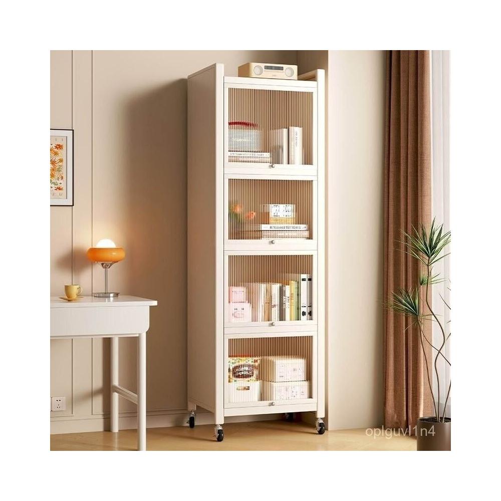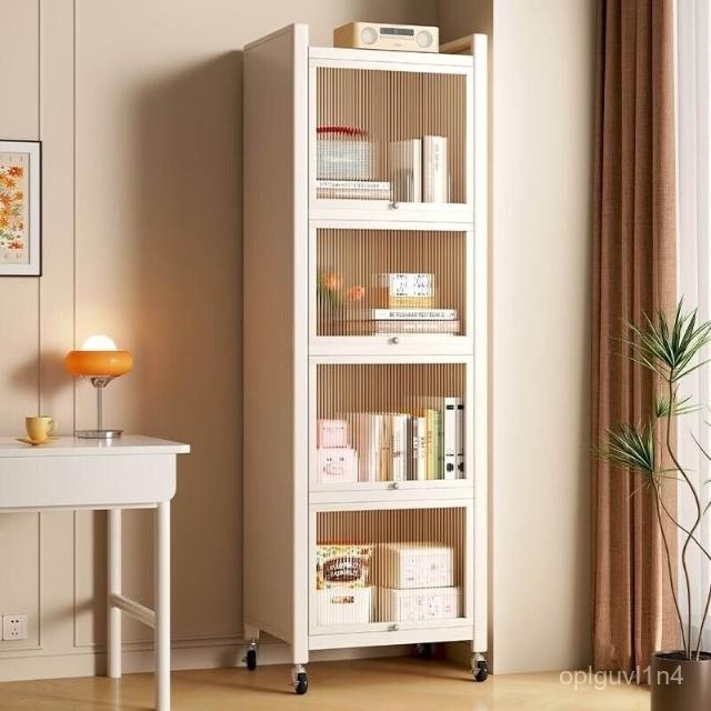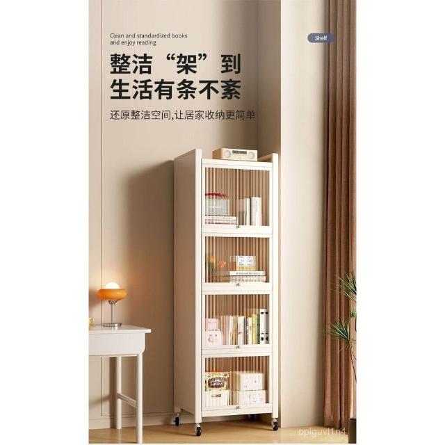 YOU樂美家居 可開發票 廠家直銷 鋼製書架兒童防塵書櫃客廳家用收納展示櫃帶門窄櫃子儲物櫃落地 4WCC