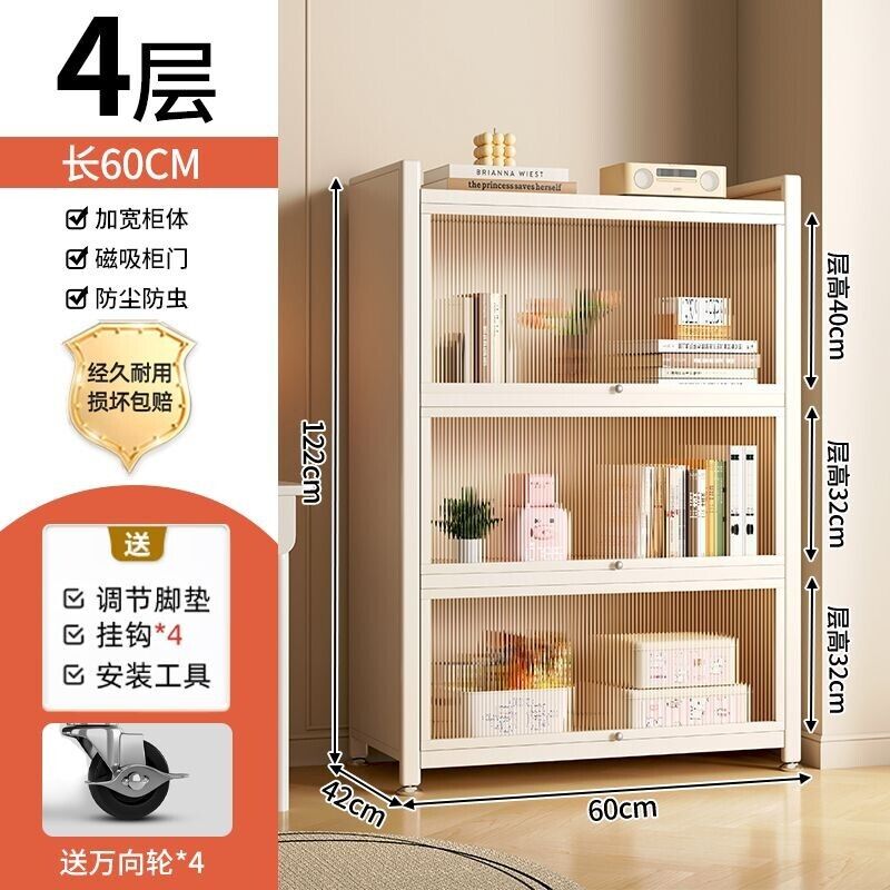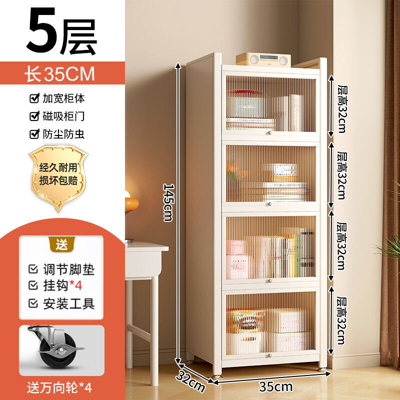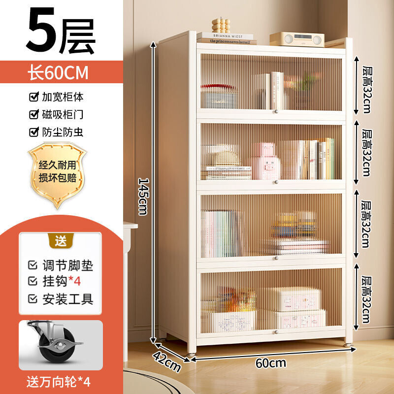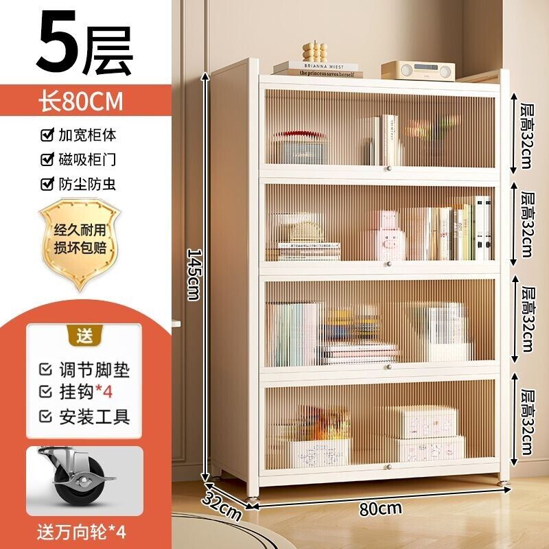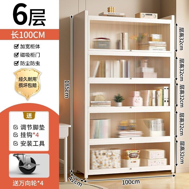 YOU樂美家居 可開發票 廠家直銷 鋼製書架兒童防塵書櫃客廳家用收納展示櫃帶門窄櫃子儲物櫃落地 4WCC