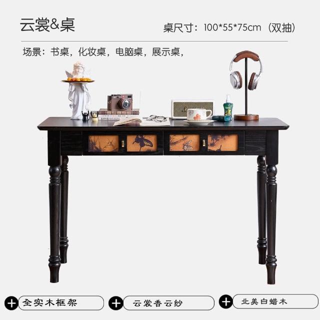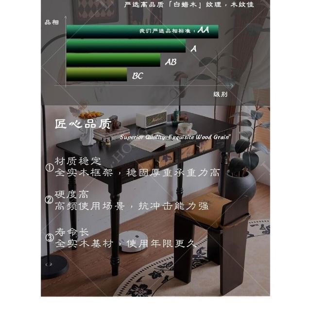 YOU樂美家居 中古風書桌 復古書桌 書桌 中古風書桌椅實木法式復古電腦桌輕奢黑色設計師化妝桌高級感