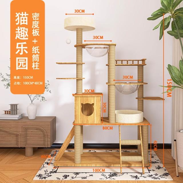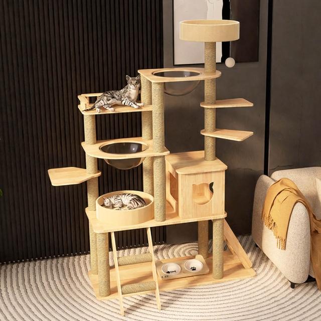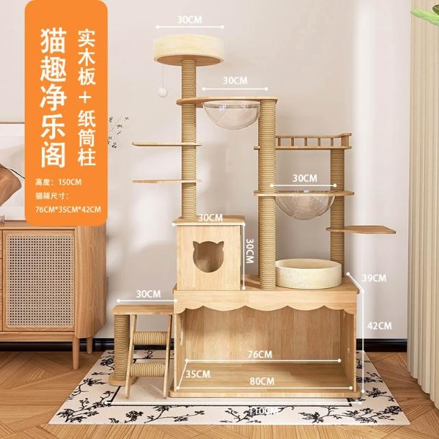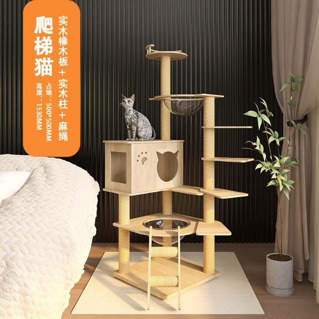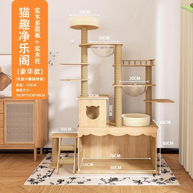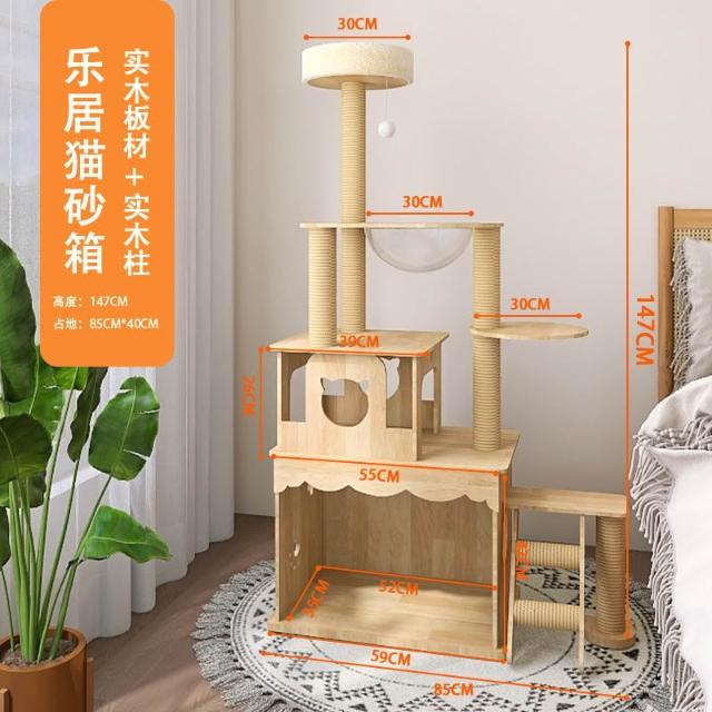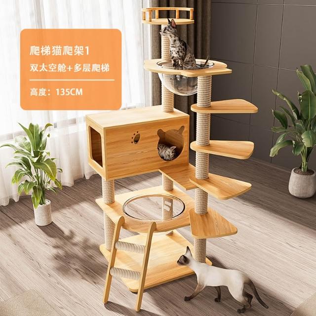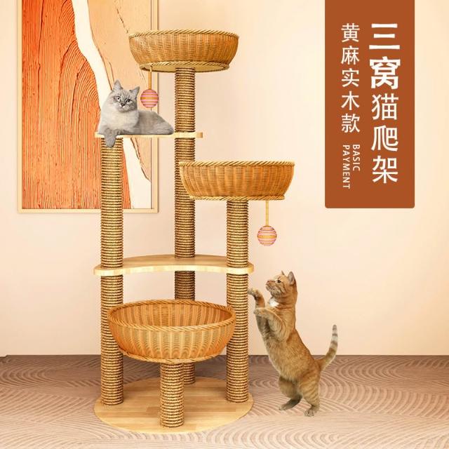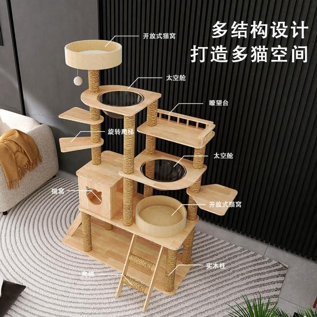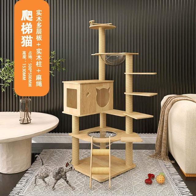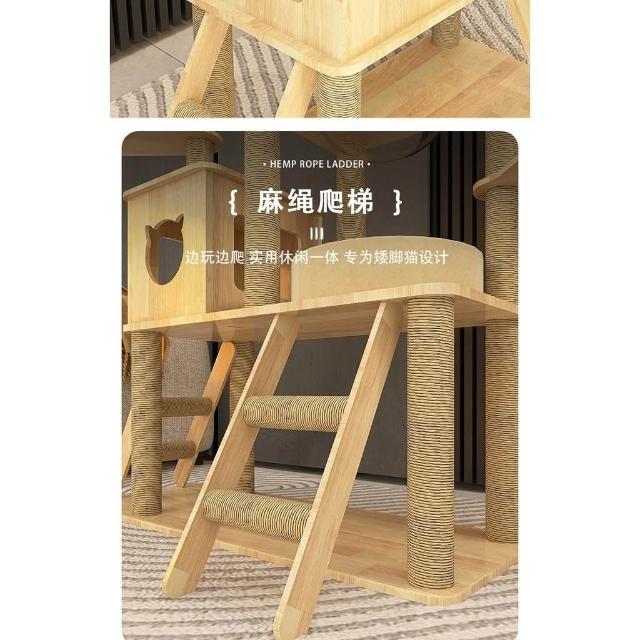 YOU樂美家居 貓爬架 貓跳臺 貓抓柱 小型實木貓跳臺 實木貓爬架貓窩貓樹一體矮腳貓架子大貓專用多跳臺占地小貓咪玩具