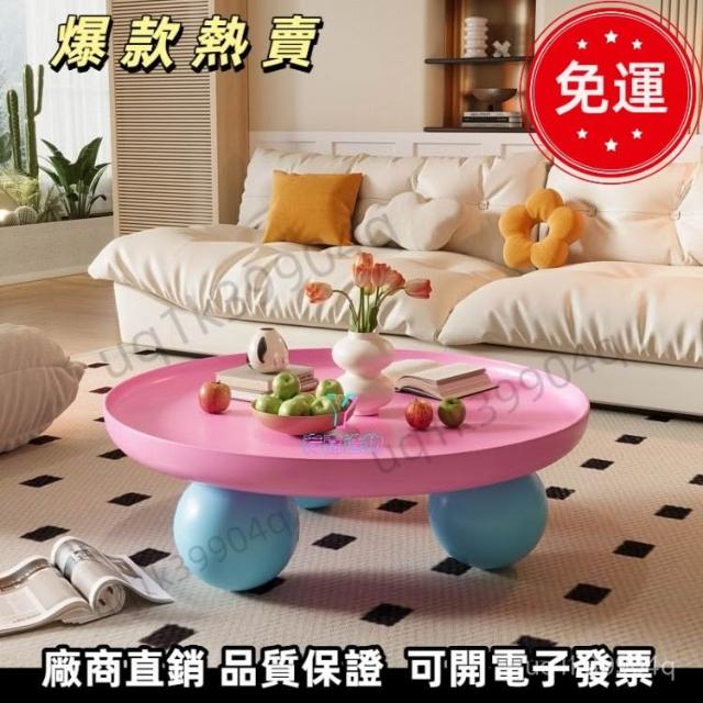 YOU樂美家居 爆款熱賣 免運多巴胺圓形奶油風茶幾客廳家用創意新北歐簡約現代小戶型沙髮圓桌 0VKI