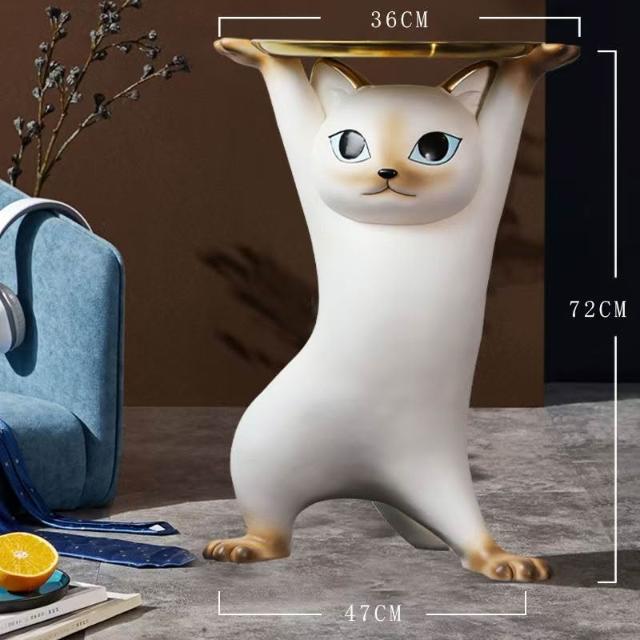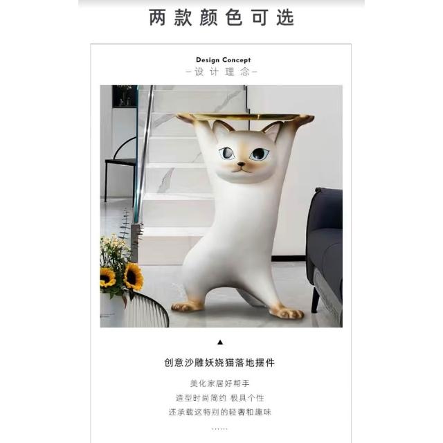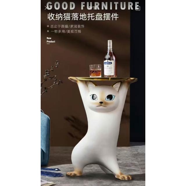 YOU樂美家居 免運 擺件 各種擺件 沙鵰妖嬈貓 電視櫃旁邊客廳大型落地託盤大號裝飾擺件新傢喬遷禮物