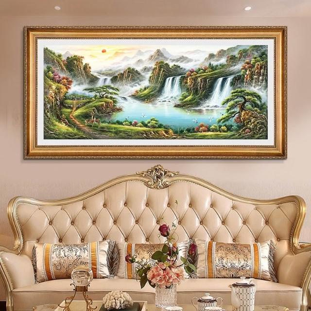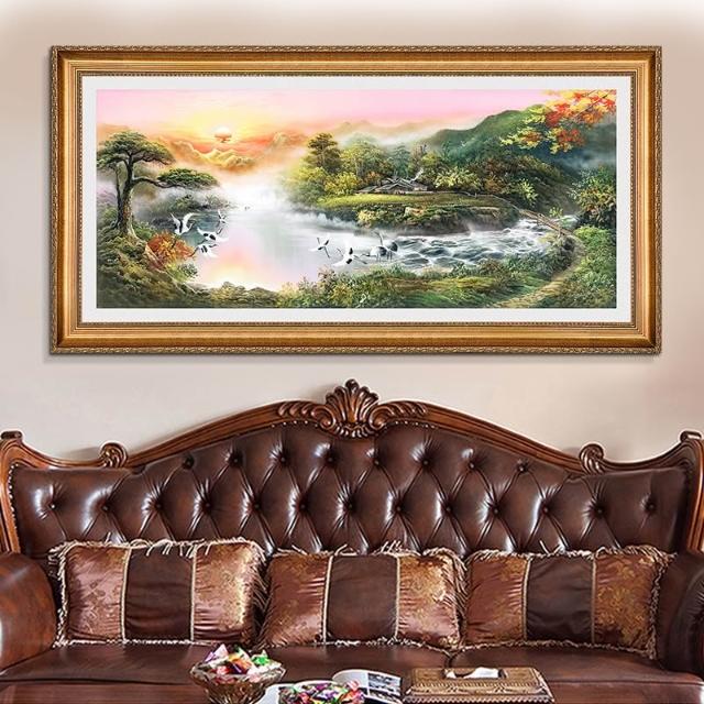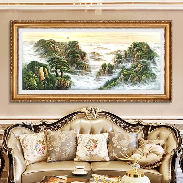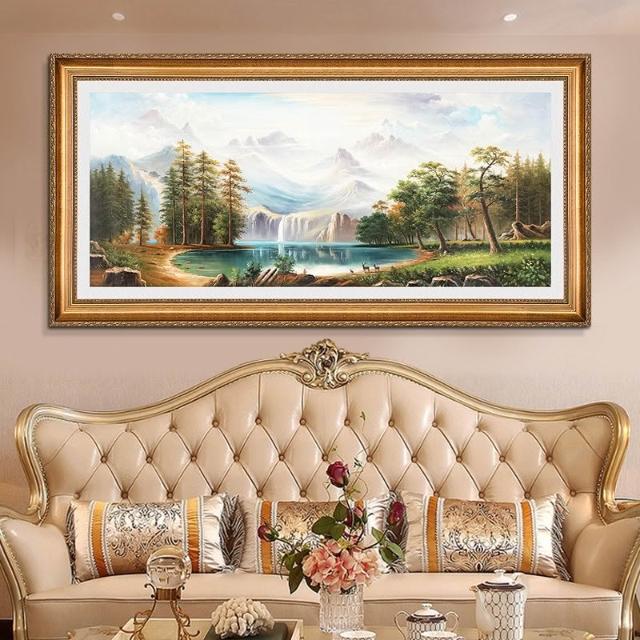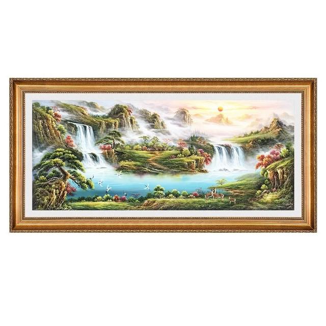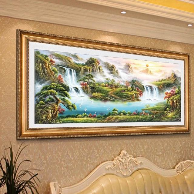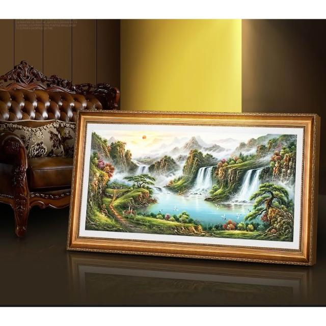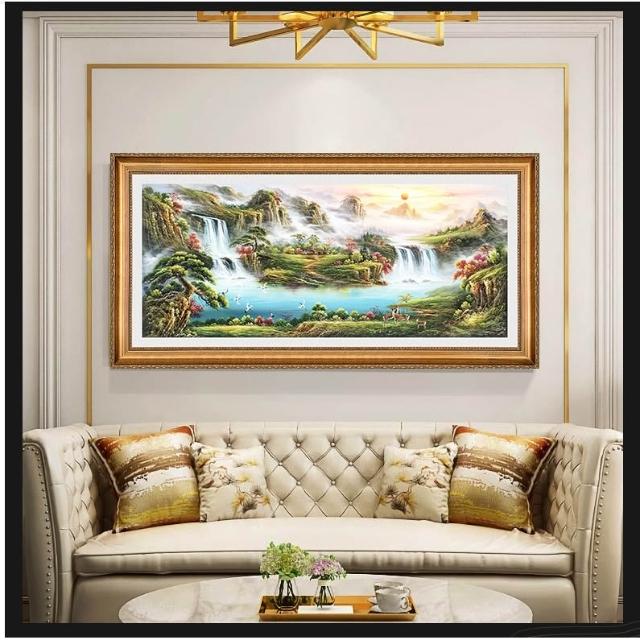 YOU樂美家居 招財開運 油畫 客廳歐式裝飾畫 聚寶盆山水畫 風水靠山招財壁畫 辦公室背景掛畫 免運
