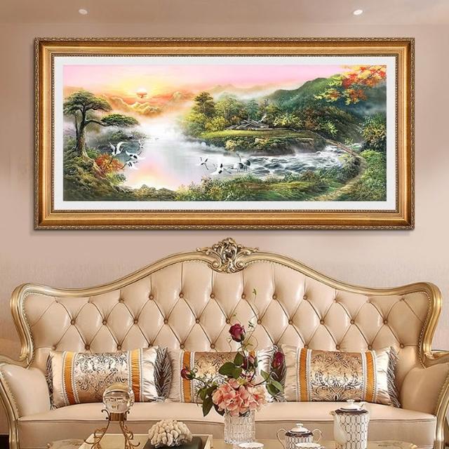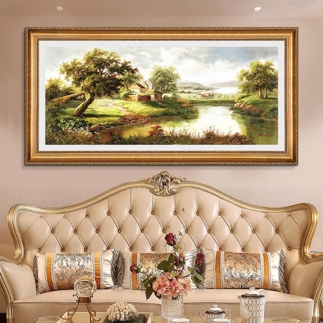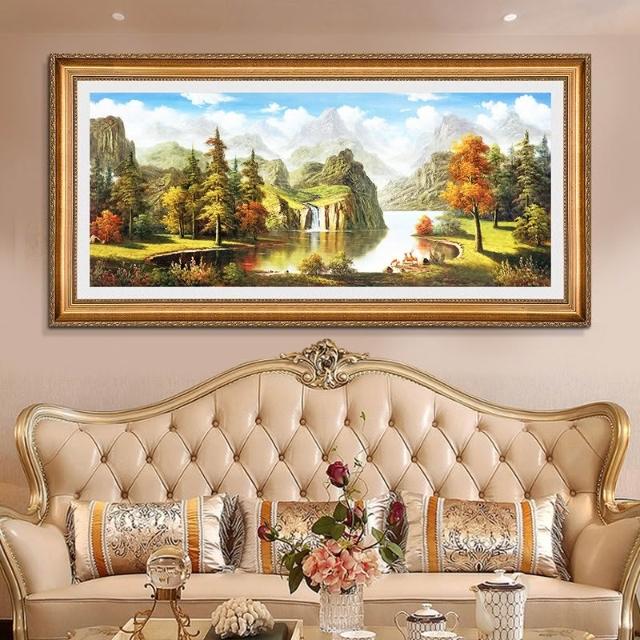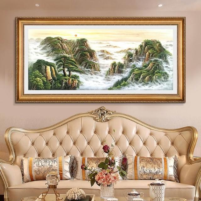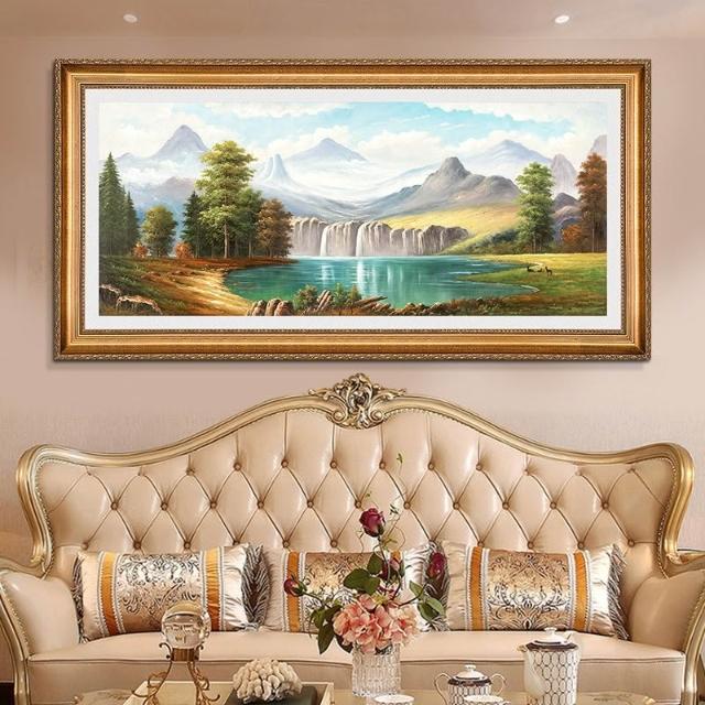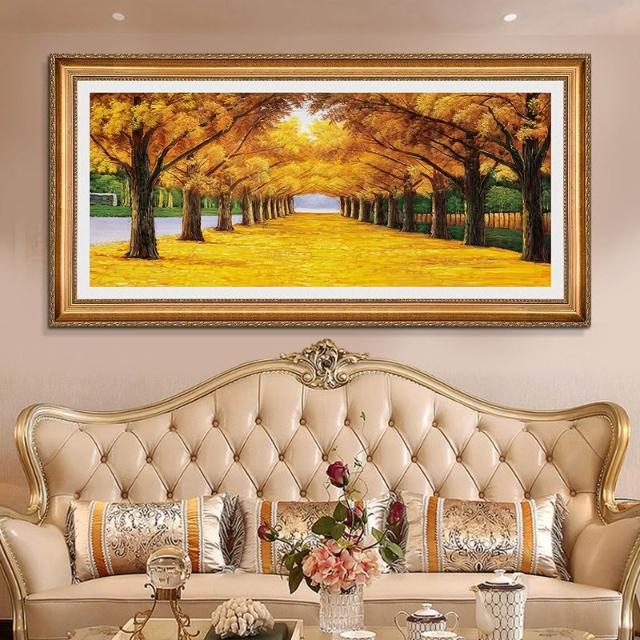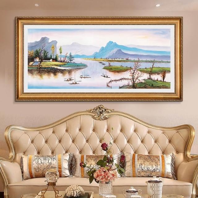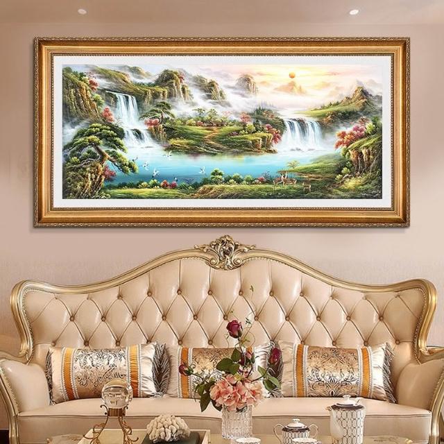 YOU樂美家居 招財開運 油畫 客廳歐式裝飾畫 聚寶盆山水畫 風水靠山招財壁畫 辦公室背景掛畫 免運
