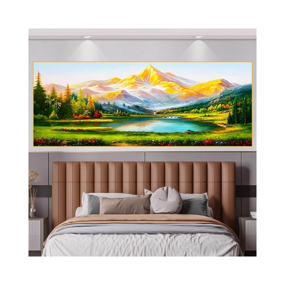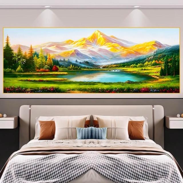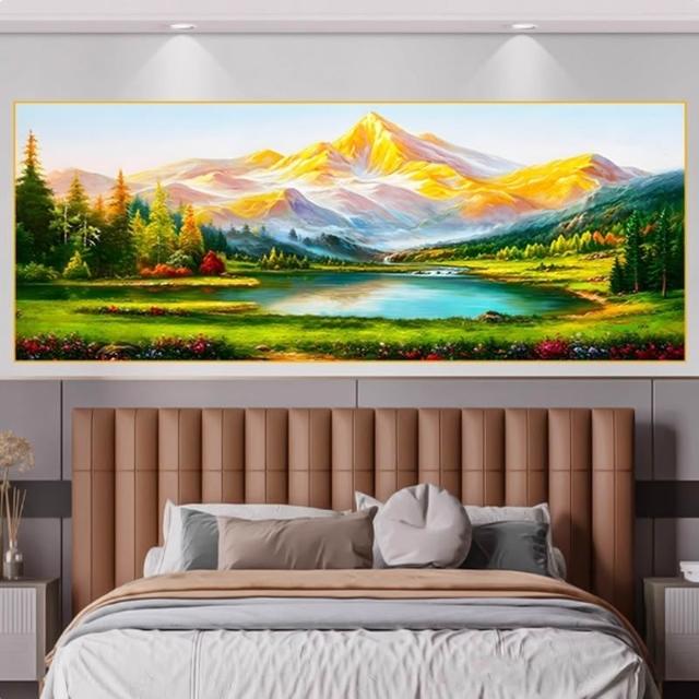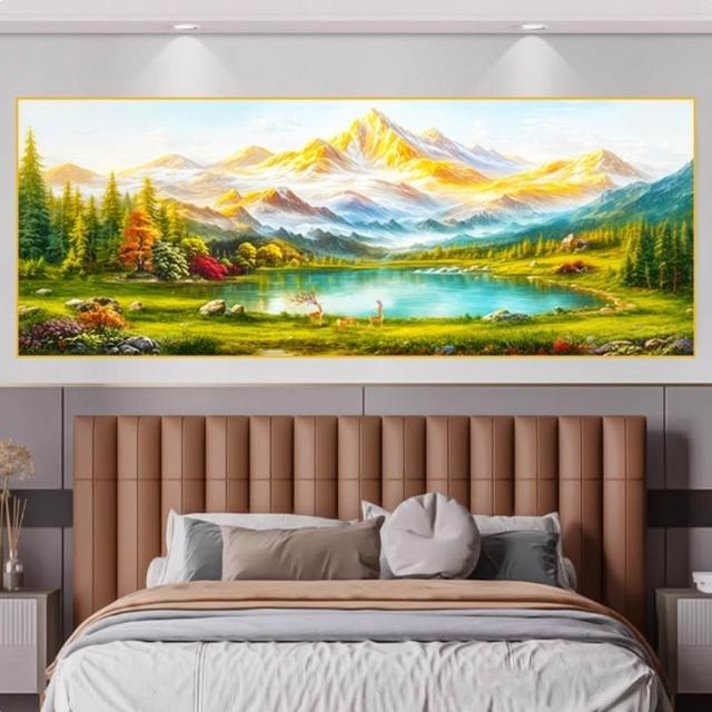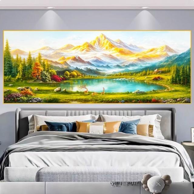 YOU樂美家居 日照金山聚寶盆山水畫客廳貼畫壁畫靠山圖背景牆裝飾畫招財辦公室 高檔LED發光畫 晶瓷畫 41560396137