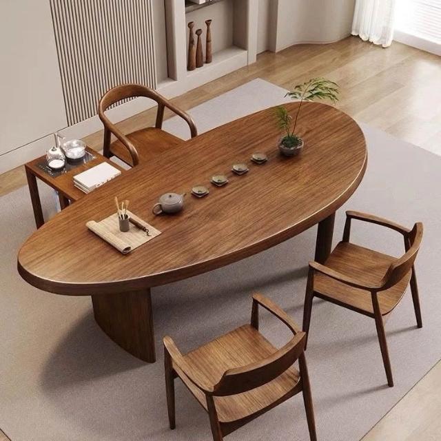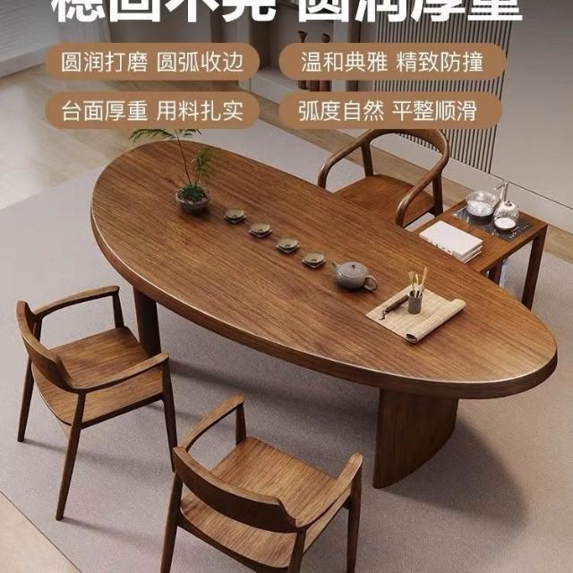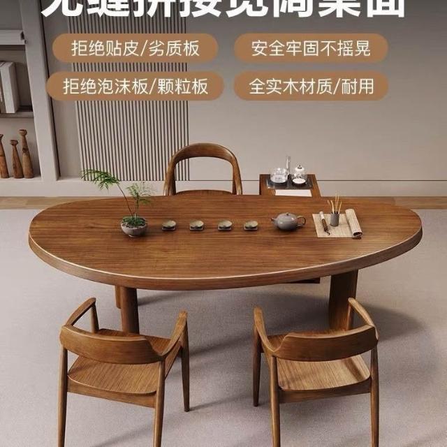 YOU樂美家居 全實木桌椅組合弧形家用原木泡茶桌子北歐中式輕奢新中式實木 原木茶臺餐桌 辦公室接待泡茶桌椅