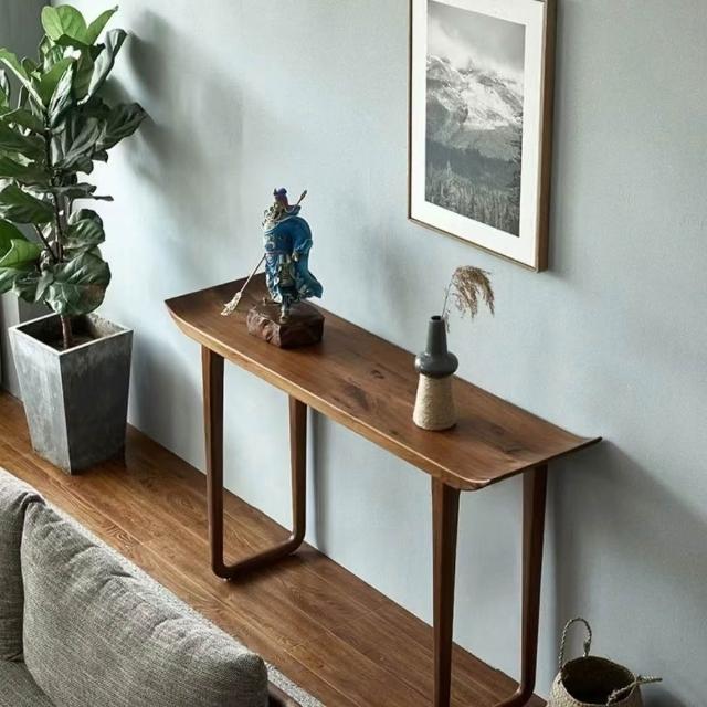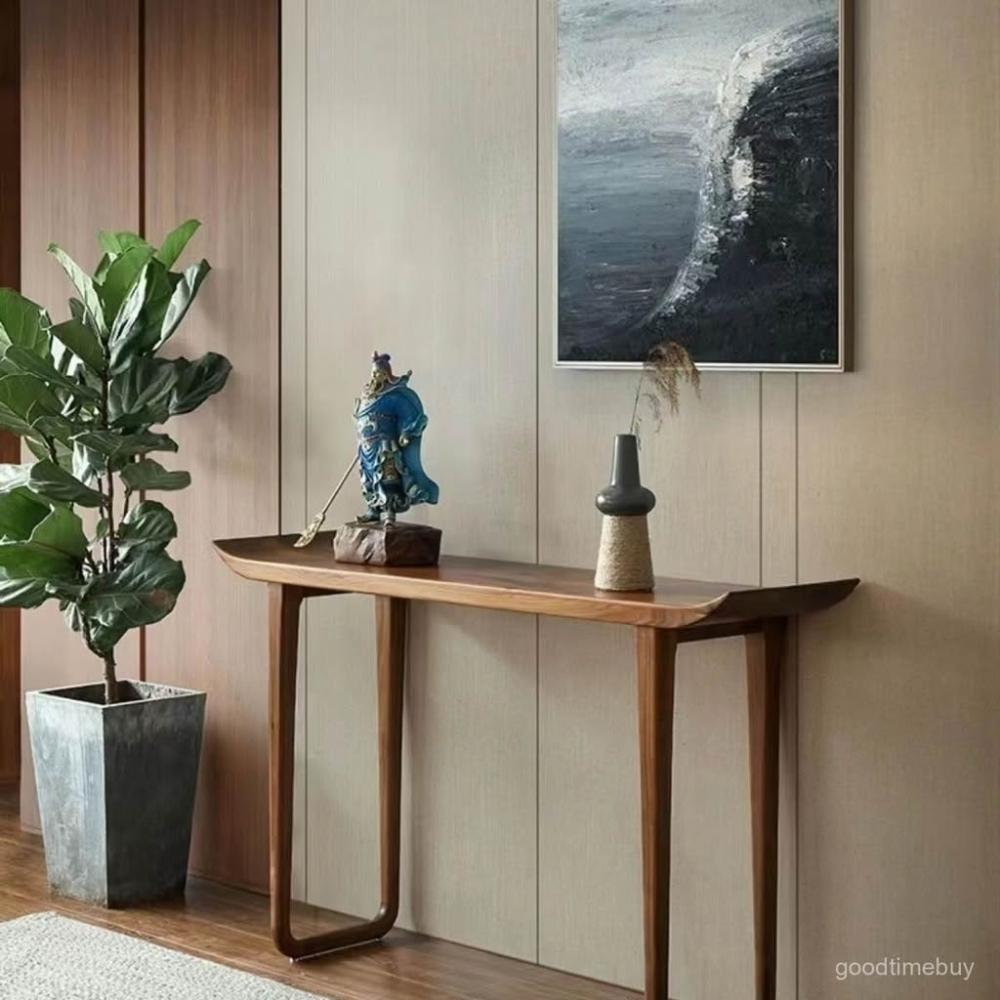 YOU樂美家居 玄關桌 邊桌 置物桌 簡約實木玄關禪意供桌靠墻窄桌入戶條案翹頭案幾酒店端景臺