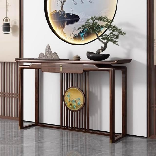 YOU樂美家居 烏金木條案客廳入戶門供桌 靠墻玄關臺 超窄實木玄關櫃 酒店大堂桌子 入戶桌子 置物桌子