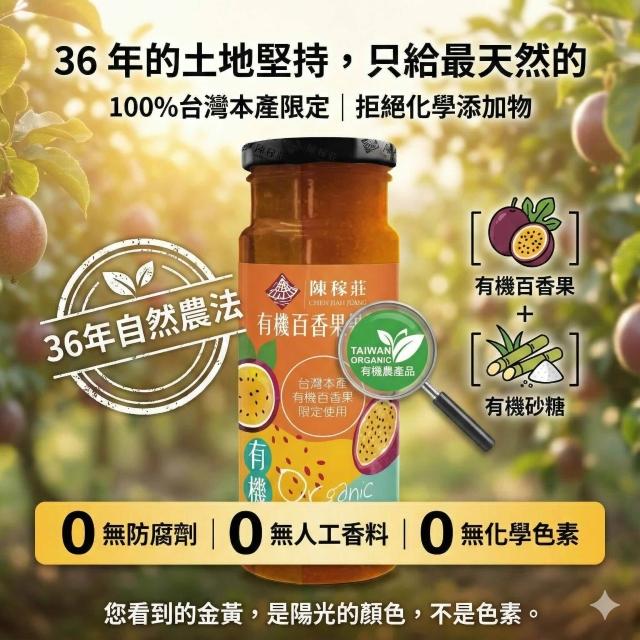 陳稼莊<高級風味系列>有機百香果果醬 300g/瓶 令人驚驗 無籽 如同現摘