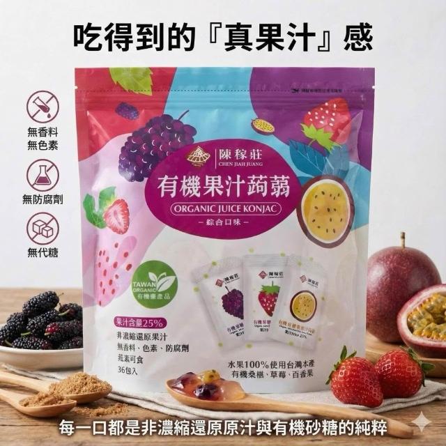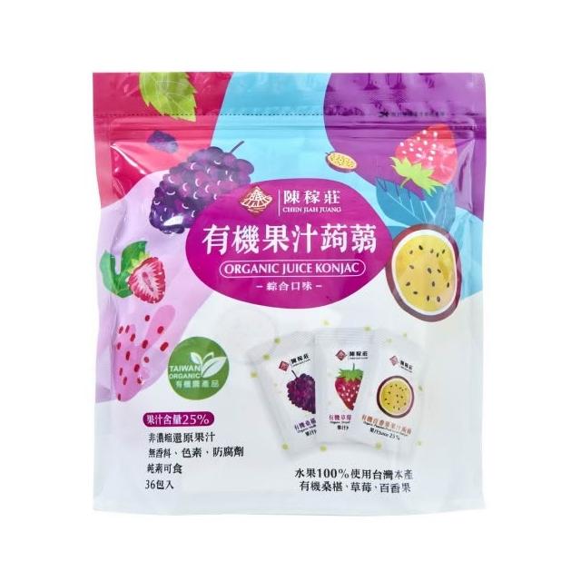 陳稼莊有機果汁蒟蒻-綜合口味(桑椹/草莓/百香果) 20gX36包/袋 (3種口味各12包)