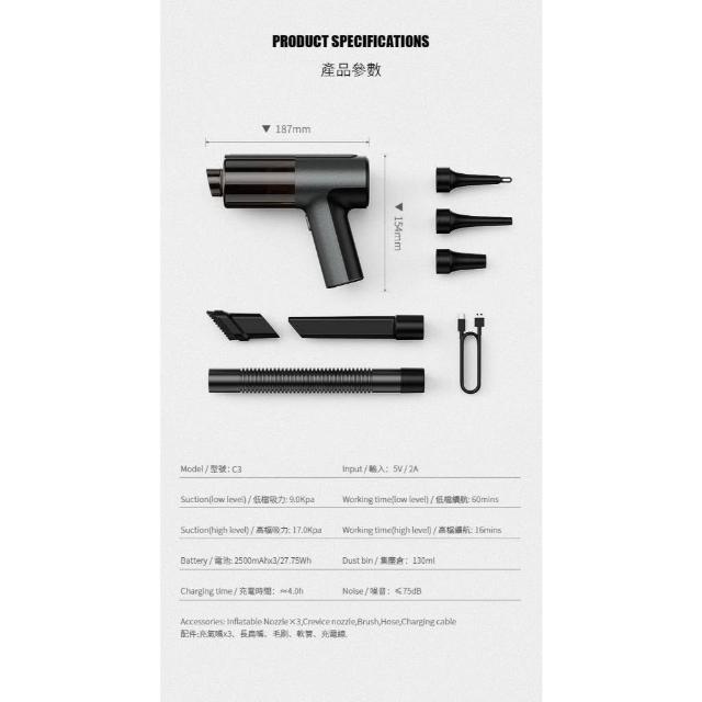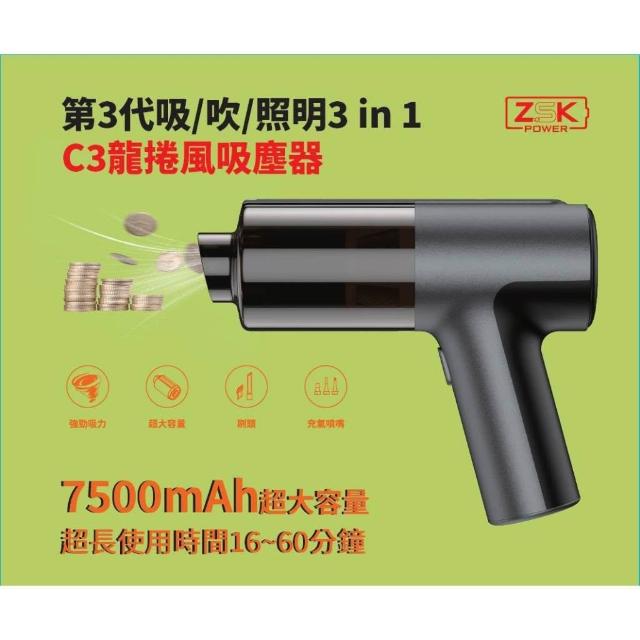 ZSK 台灣公司貨 🔥第3代升級版 C3龍捲風吸塵器🔥吸塵、吹氣、照明 三合一多功能設計