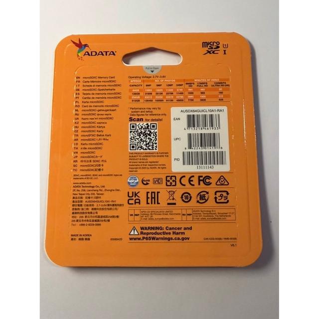 ADATA 威剛 ADATA 威剛 64G Premier UHS-I C10/U1/V10/A1 高速記憶卡附轉卡