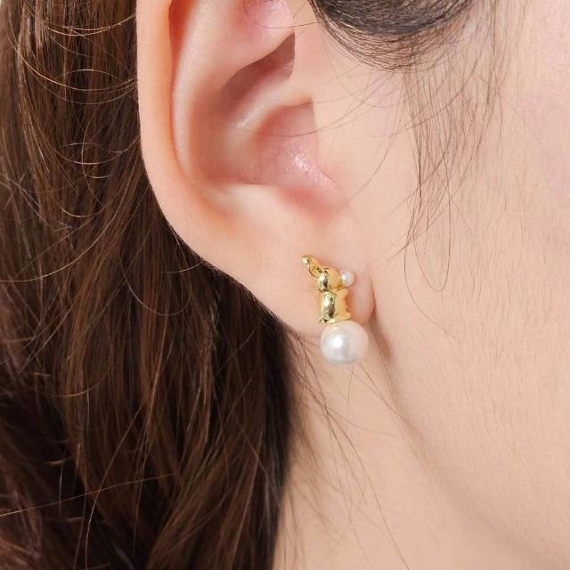 YZGM羽之共鳴服飾《雪球坐坐》小兔子珍珠耳針 耳環