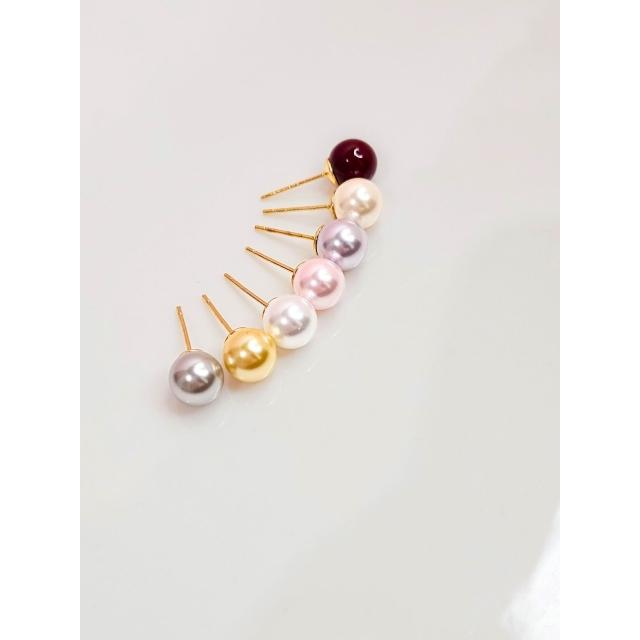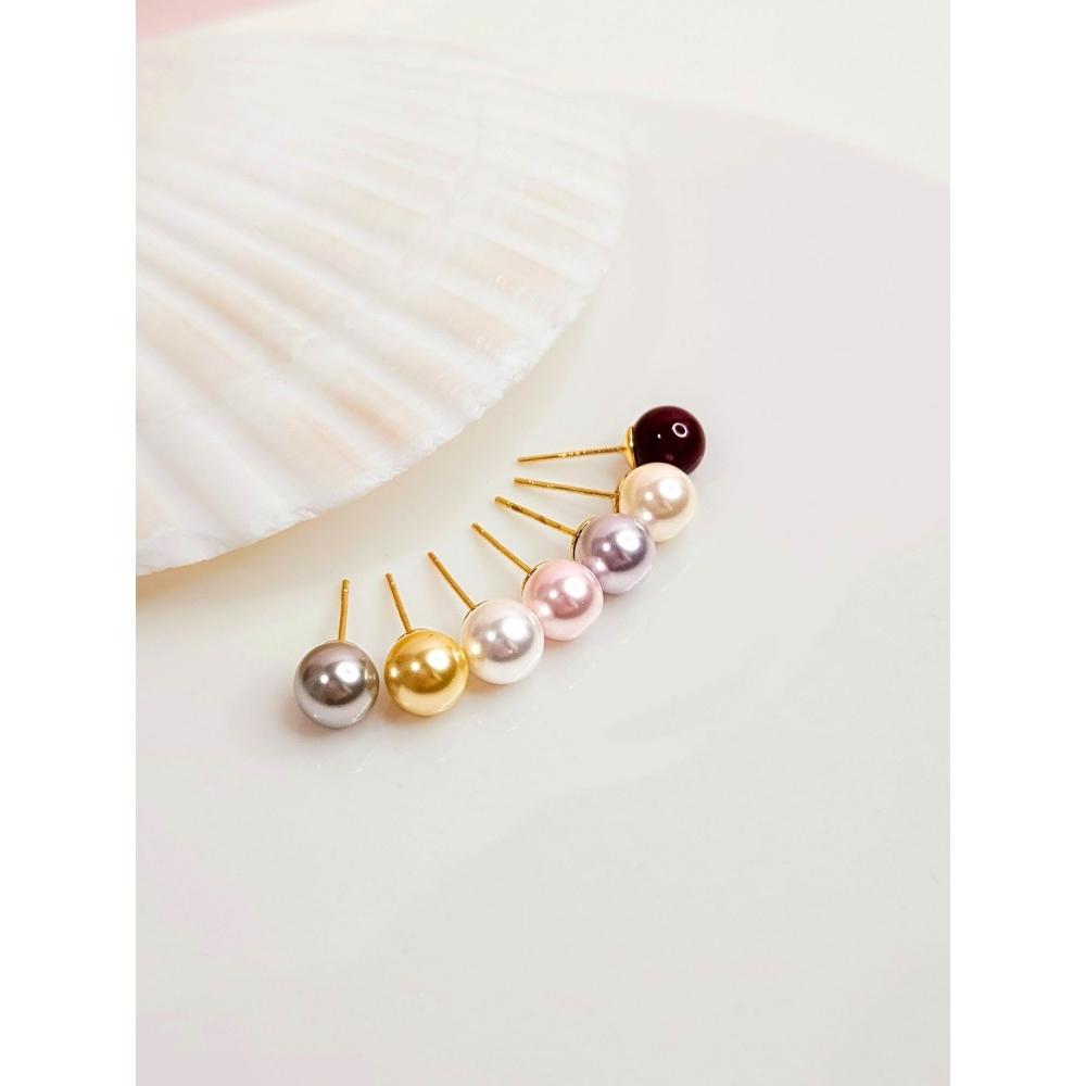 羽之共鳴服飾 雋永單顆珍珠耳環|提升氣色包色必備款 粉色/黃色/淺灰色/奶白色/白色/暗紅色/深灰色