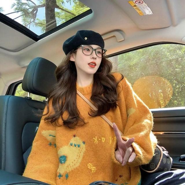 橘色毛衣女2025新款秋冬季加厚復古減齡寬松慵懶感韓系針織衫