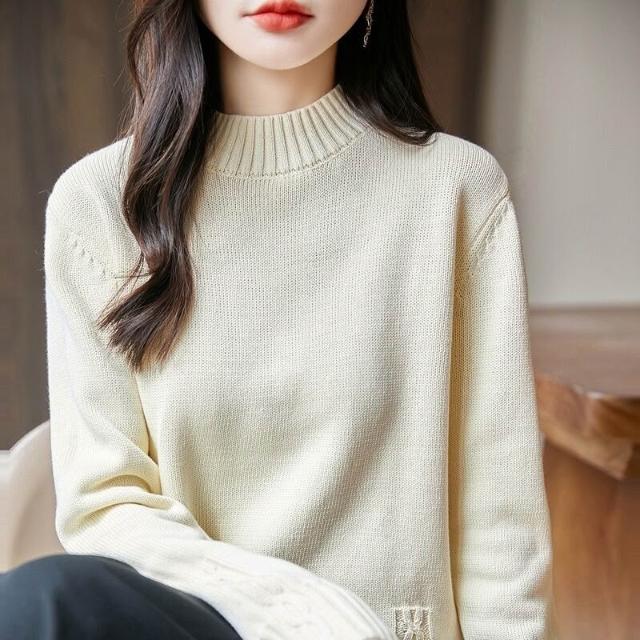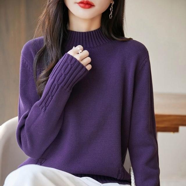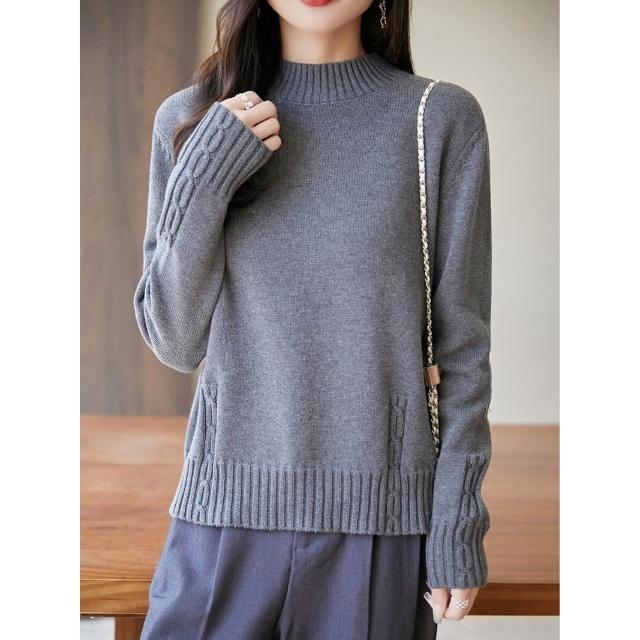 重磅加厚純棉線麻花針織衫女半高領毛衣2025新款秋冬內搭打底上衣