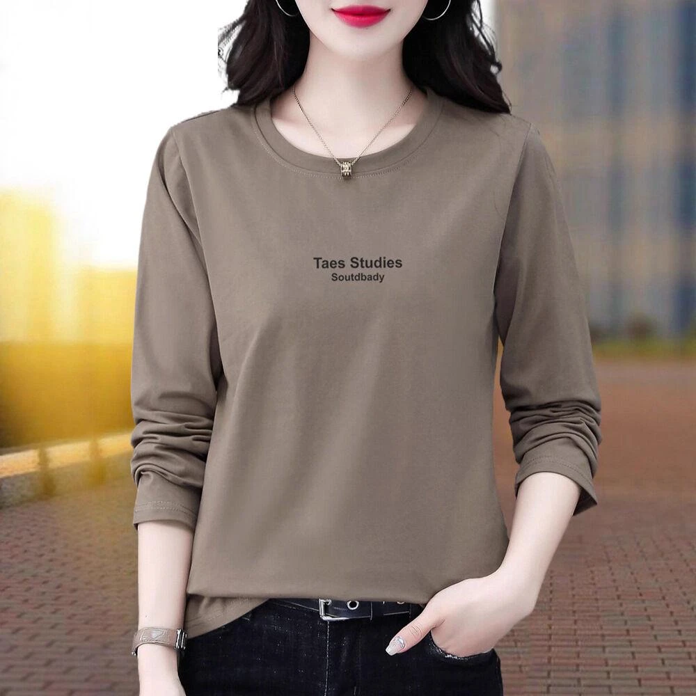 圓領純棉長袖t恤女春秋季薄款2025年新款大碼寬松顯瘦打底衫上衣